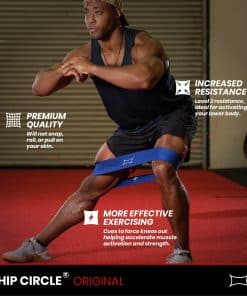 2. FORTALECER: Desliza la banda de cadera por tus piernas y camina, haz sentadillas o realiza cualquier movimiento de cuerpo inferior para tonificar y reafirmar tus piernas, glúteos y caderas.