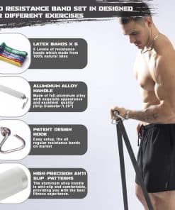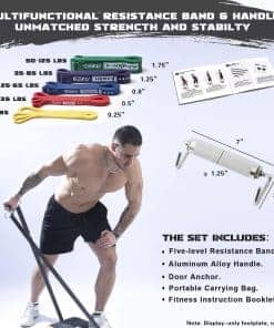 5. Portátil y Fácil de Usar: Diseñadas para la conveniencia, nuestras bandas de ejercicio son compactas y livianas. Completo con un anclaje de puerta de ejercicio profesional, un póster de entrenamiento y una bolsa de almacenamiento, y un mango de entrenamiento resistente, puedes configurar fácilmente tu espacio de entrenamiento en cualquier lugar en solo 60 segundos.