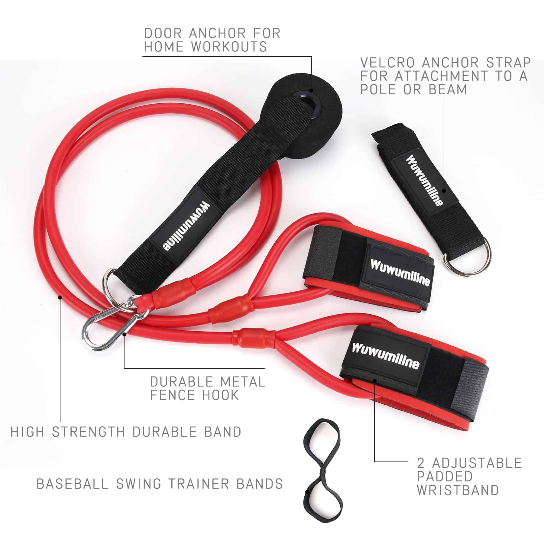 5. ACCESORIOS COMPLETOS: Un juego de bandas de resistencia de béisbol incluye cinco accesorios, que son bandas de resistencia, correas de muñeca, correas de anclaje, anclajes para puertas y un entrenador de swing de béisbol. Dos valores de resistencia: 20 libras para Jóvenes/Edades 12 y Menos o 30 libras para Equipos de Escuela Secundaria/Viajes. Nuestras Bandas de Resistencia de Béisbol pueden satisfacer tus diversas necesidades de entrenamiento