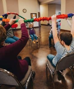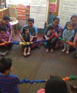 Estas brillantes Bandas Elásticas están hechas de tubos de látex o sin látex cubiertos con tela e incluyen un cierre de gancho y bucle. La Banda Elástica Conectable incluye un sistema de hebilla. Son ideales para practicar numerosas áreas de objetivo y actividades grupales. Practica haciendo figuras, ritmo y problemas de límites. Terapeutas de música, Music Together, educadores de música, maestros de preescolar, bibliotecarios, terapeutas recreativos y directores de actividades adoran usarlas con sus clientes y estudiantes. Ideal para que los padres introduzcan en un tiempo de círculo en casa. Incluye una bolsa con cordón, hoja de actividades y es lavable a máquina. Disponible en seis variaciones diferentes. Personal es perfecto para uso individual o uno a uno. Tiene 4.5 pies de circunferencia. Pequeño tiene 6 pies de circunferencia ~ 2-5 personas o 8 niños. Mediano tiene 12 pies de circunferencia ~ 5-8 personas o 16 niños. Grande tiene 18 pies de circunferencia ~ 8-11 personas o 22 niños. XL tiene 24 pies de circunferencia ~ 11-14 personas o 28 niños. La Banda Elástica Conectable tiene 6 pies de largo. La Banda Elástica Conectable fue creada por una directora de Music Together. Quería poder usar la banda elástica recta o en círculo. La belleza adicional de la banda elástica conectable es que es genial si trabajas con tamaños de grupo variables. Abrocha 6 juntas para grupos extra grandes. Incluso puedes dividir grupos alrededor de círculos individuales. Las Bandas Elásticas, creadas en 2000 por Bear Paw Creek, se fabrican al 100% en los EE. UU. con materiales de origen global.