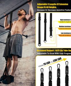 Juego de bandas de asistencia para dominadas fabricadas con gancho en forma de calabaza reforzado emparejado con bandas de asistencia de altura ajustable, 70-280 lbs/ 4 bandas de rebote de potencia opcionales, pedales para apoyar el uso suave y seguro de ambos pies/rodillas, principiantes que desean hacer entrenamientos completos de dominadas y entusiastas intermedios amantes del fitness que desean intensificar su entrenamiento. Sugerencia: use las 4 bandas elásticas de asistencia al comenzar con las bandas de asistencia para dominadas. La configuración del gancho en forma de calabaza elimina la desventaja de que las bandas ajustables de asistencia se deslicen al enfocarse en hacer dominadas, alta calidad y fácil de instalar ajustar. Las bandas de asistencia envueltas en tela de fabrican ralentizan la oxidación de los tubos de látex, prolonga la vida útil y protege a los deportistas que son alérgicos al látex. La placa base de EVA doble ensanchada fabricada en tela en el interior conectada en la parte superior por una composición de doble hebilla D, amigable con la piel y estable en el uso de asistencia para dominadas. Cuelgue las bandas ajustables de asistencia para dominadas en una barra resistente, alargue/corte dependiendo de su altura, si solo necesita una longitud más corta, se recomienda envolver las bandas de asistencia varias veces para aumentar la durabilidad de la cinta. Cuantas más veces envolver las bandas de asistencia, más asistencia para dominadas a las mismas libras. Elija las bandas de asistencia con un soporte de 70-280 libras según su fuerza hasta que pueda completar una dominada solo. Instale el pedal para el pie. Comience el viaje de entrenamiento de dominadas. Nuestras bandas de asistencia para dominadas trabajan bíceps, hombros, espalda y músculos centrales. ¡Perfecto para uso suplementario de bandas de asistencia de barra de dominadas en gimnasio en casa para construir fuerza en la parte superior del cuerpo rápidamente! Pesando solo 2.5 libras, el juego de bandas de asistencia para dominadas se puede instalar fácilmente en cualquier barra de gimnasio/al aire libre y barra de dominadas. Ya sea que esté luchando por completar una dominada por su cuenta o desee romper un estancamiento e incrementar las repeticiones, estas bandas de asistencia para dominadas le proporcionarán el apoyo que necesita. La altura y las bandas de asistencia ajustables en altura enriquecen su rutina de entrenamiento, ayudándole a alcanzar sus metas y construir fuerza más rápidamente. Proporcionamos instrucciones detalladas, cualquier pregunta sobre la calidad o el método de uso de las bandas de asistencia para dominadas, le brindaremos rápidamente una respuesta. ¡Comience pronto su entrenamiento con bandas de asistencia para dominadas!
