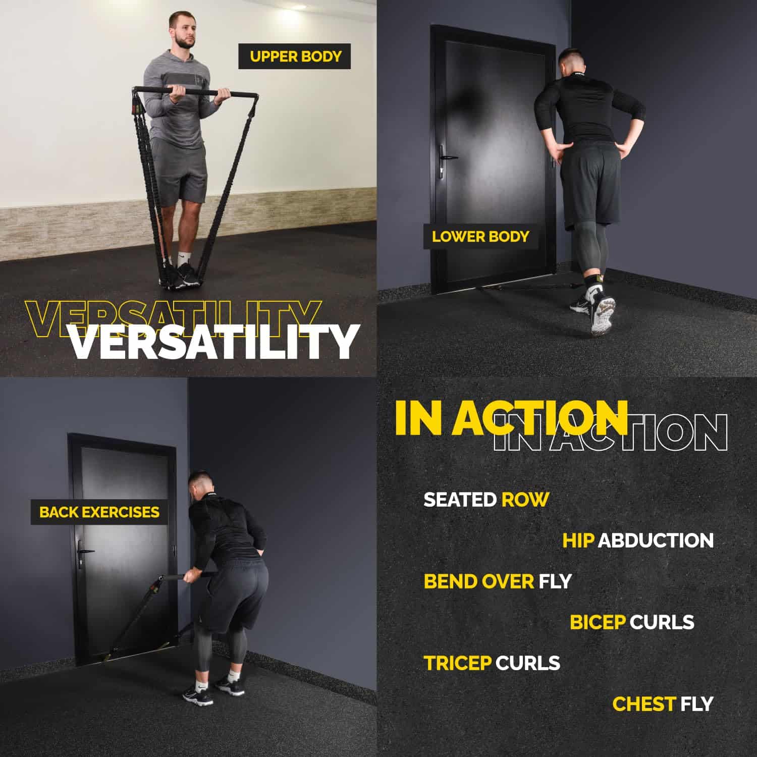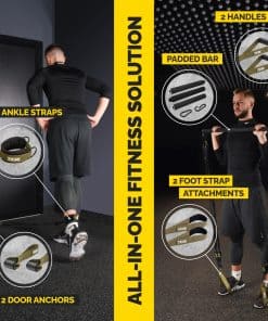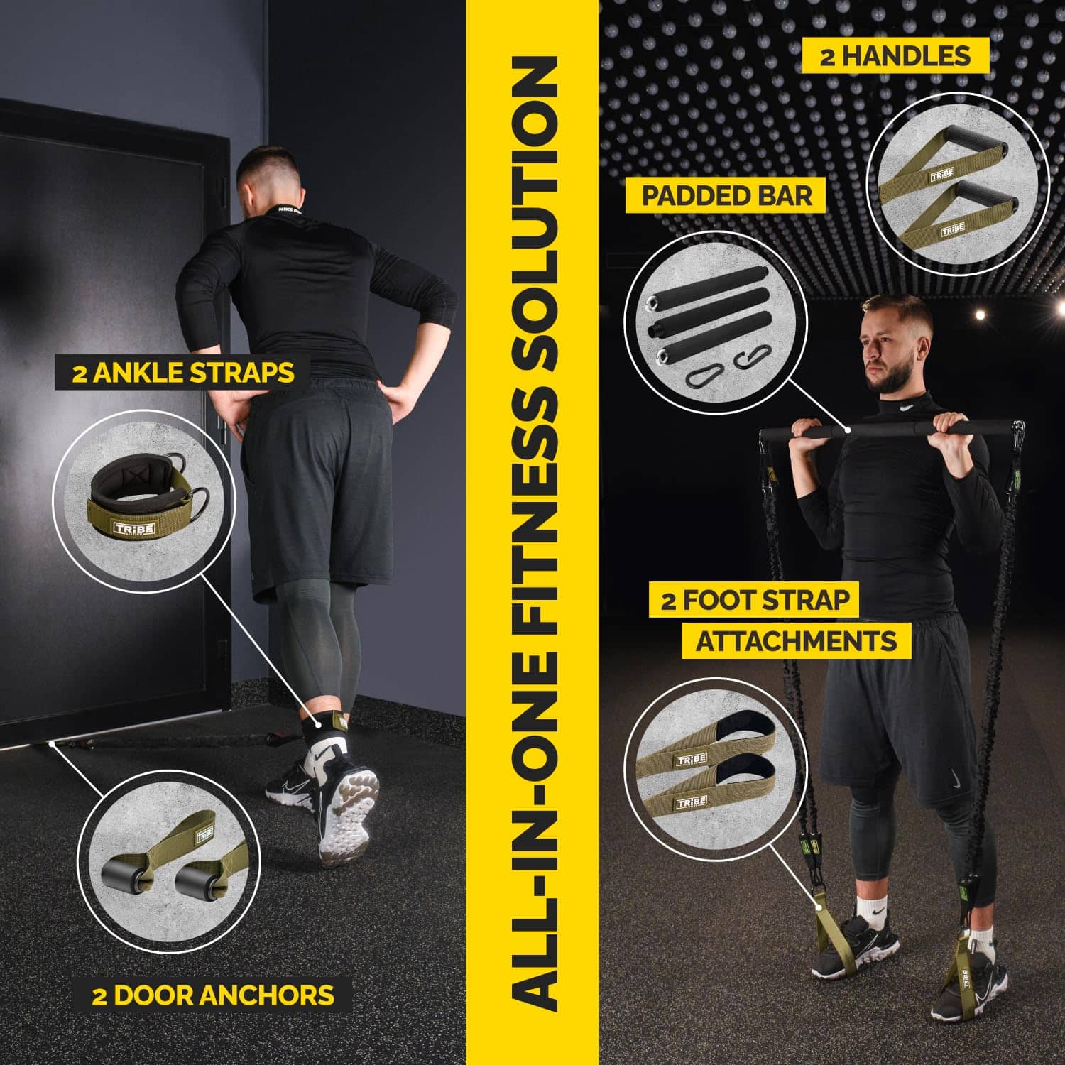 3. Paquete completo: Barra de bandas de resistencia, bandas de ejercicio con manijas, 2 accesorios para correas de pie, 2 anclajes de puerta, 2 correas para tobillos. Perfecto para bandas de ejercicio para hombres como un set de bandas de resistencia todo en uno, adaptándose tanto a ejercicios de la parte superior del cuerpo como de la parte inferior del cuerpo.