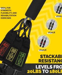1. Set de bandas de resistencia: Incluye tubos de 2x20lb, 2x30lb, 2x40lb, permitiendo una resistencia de hasta 180lb. Ideal para una variedad de entrenamientos y adaptable para ejercicios de fuerza, flexibilidad y rehabilitación, haciendo de estas las bandas elásticas perfectas para el ejercicio.