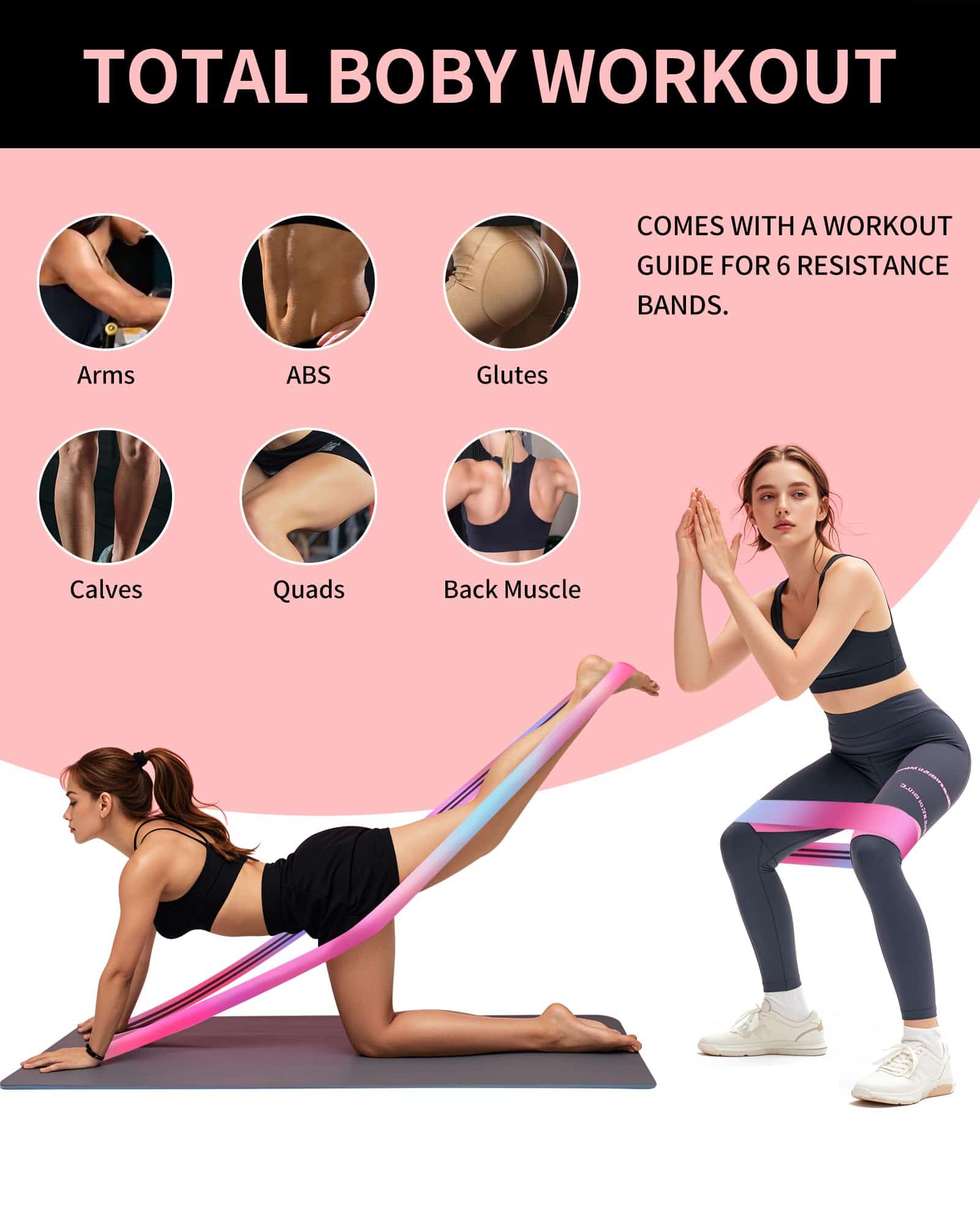 2. 3 Bandas para Glúteos – Bandas de 15″ con diferentes resistencias que pueden entrenar eficazmente la curva de la cadera, tensar los músculos del muslo y hacer que la línea de la pantorrilla sea más perfecta. Es el accesorio de fitness ideal para el entrenamiento de la parte inferior del cuerpo.