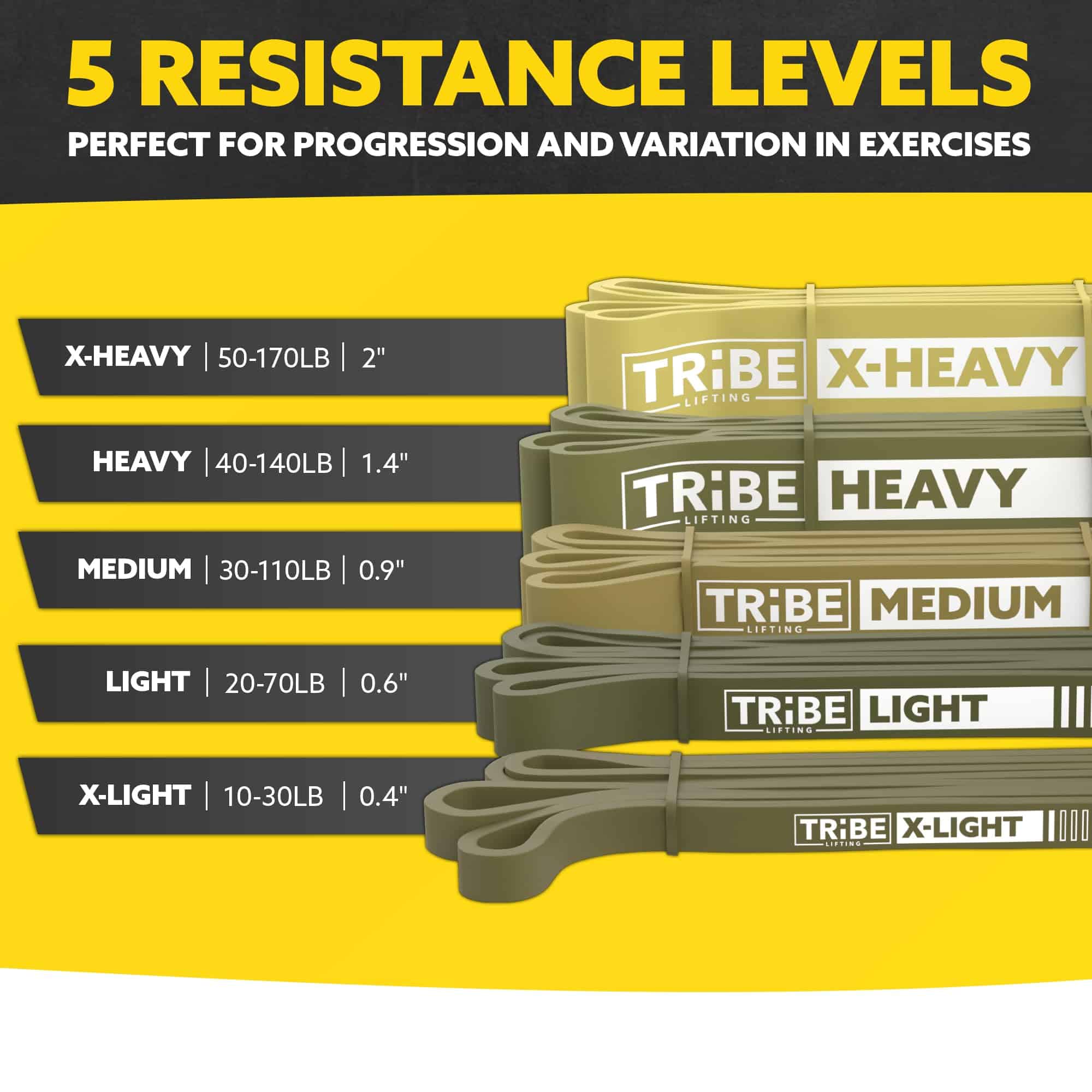 Bandas de resistencia de látex natural duraderas y resistentes diseñadas para hombres y mujeres que buscan mejorar su entrenamiento y ganar fuerza. Con 5 niveles de resistencia, estas bandas son ideales para todo tipo de entrenamientos, desde principiantes hasta atletas avanzados. Utilízalas como ayuda para pull ups, estiramiento o terapia física. Este set versátil de bandas de resistencia es perfecto para llevar contigo cuando viajas o como equipo de ejercicio para tu hogar. ¡Obtén un entrenamiento efectivo con la garantía de calidad de Tribe Lifting!