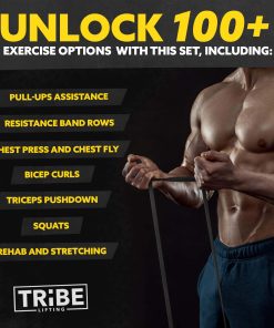 Bandas de Resistencia Largas para Hombres y Mujeres – Juego de 5 Bandas para Tirones, Bandas de Ayuda para Dominadas – Bandas de Resistencia para Ejercicio para Hombres – Bandas Extensibles para Ejercicio. Duradero y Ecológico – Bandas de tirar de goma de látex natural con construcción en capas 3 veces más duraderas que otras bandas elásticas para ejercicio. Cualquier Nivel – Nuestro juego de bandas de resistencia tiene 5 niveles de resistencia para cada banda de ayuda para dominadas y son adecuadas para principiantes como bandas de estiramiento para terapia física, como bandas de resistencia para dominadas para un intermedio o incluso como bandas de sentadilla para un atleta. Multifuncional – Estas bandas de ejercicio son excelentes para una variedad de usos, como ayuda para dominadas, bandas de estiramiento o como bandas de resistencia para terapia física. Las bandas de resistencia son adecuadas para ser utilizadas como bandas para bíceps en el entrenamiento. Versátil – Este juego de bandas de entrenamiento para hombres y mujeres funciona como equipo de fitness para viajes o equipo de ejercicio para el gimnasio en casa para que siempre puedas obtener un entrenamiento con una banda resistente o como bandas de asistencia para dominadas cuando necesites un poco de ayuda. Garantía – El equipo de entrenamiento Tribe Lifting está diseñado en América del Norte y fabricado con gran atención al detalle. Si no estás satisfecho con tu juego de bandas de resistencia, reemplazaremos las bandas de gimnasio para dominadas o te emitiremos un reembolso