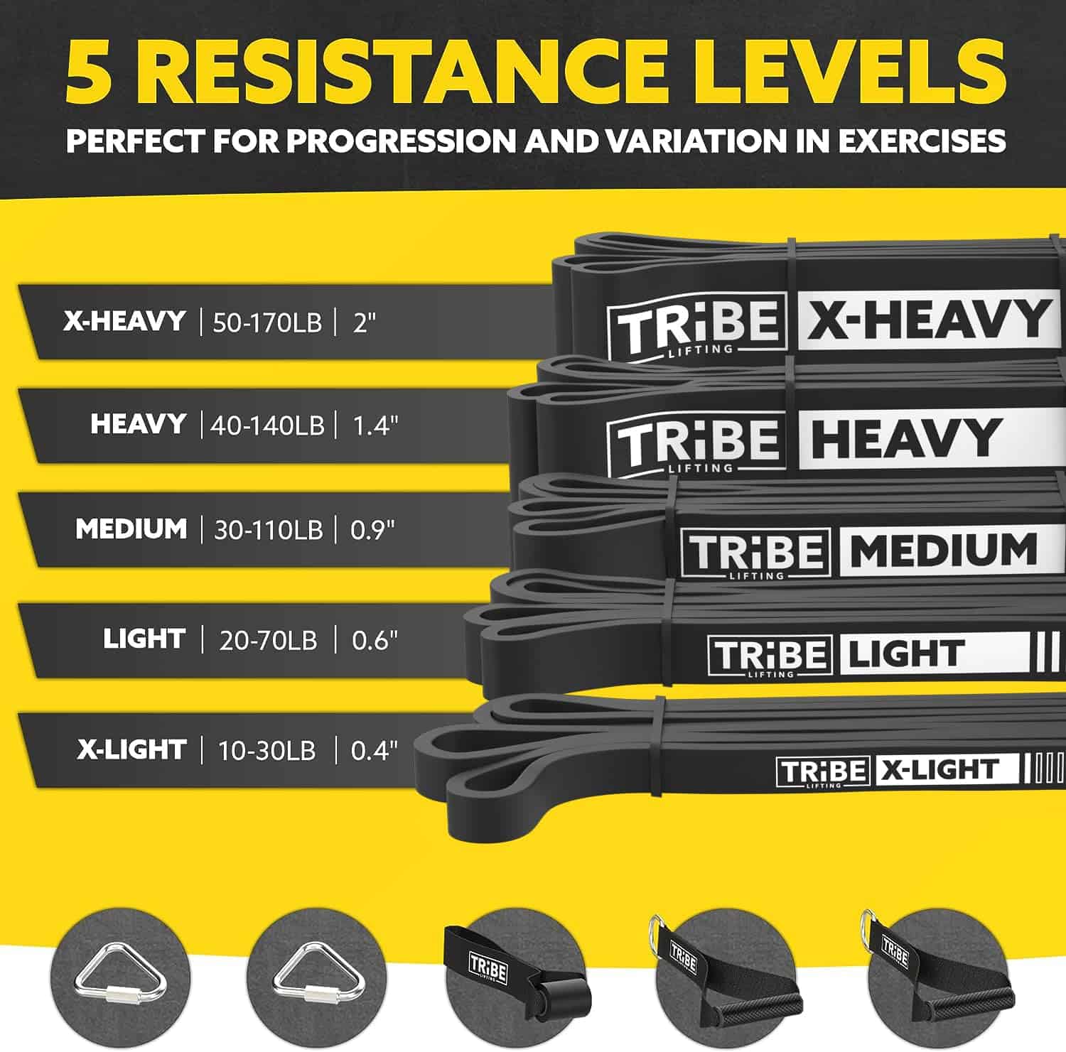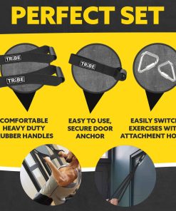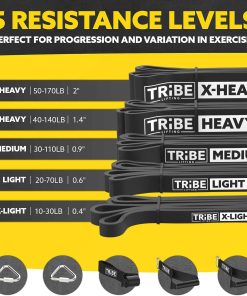 Bandas de resistencia de alta calidad para hombres y mujeres que buscan mejorar su fuerza y flexibilidad. Este juego de 5 bandas elásticas para ejercicio ofrece una amplia gama de resistencia para adaptarse a cualquier nivel de entrenamiento. Las bandas vienen con mangos de goma antideslizantes y un anclaje de puerta para una mayor versatilidad en tus rutinas de ejercicio. Perfectas como bandas de asistencia para pull ups, bandas de estiramiento o para usar en terapia física. Fabricadas con látex natural duradero y respetuoso con el medio ambiente, estas bandas de resistencia son una excelente adición a tu equipo de entrenamiento en casa o en cualquier lugar. ¡Obtén tu set de bandas de ejercicio Tribe Lifting hoy y lleva tus entrenamientos al siguiente nivel!