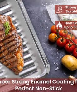 Mejora tu experiencia culinaria con esta bandeja para asar cromada para horno, perfecta para asar, asar y gratinar. Este juego de doble bandeja para asar incluye una bandeja para asar con rejilla, lo que lo hace ideal para preparar desde bistecs hasta verduras. Diseñada con versatilidad en mente, esta bandeja para asar para horno con rejilla también funciona como una bandeja para parrilla para horno, ofreciendo una distribución uniforme del calor para comidas perfectamente cocinadas. El elegante acabado cromado agrega estilo a tu cocina al tiempo que garantiza una limpieza sin esfuerzo, y la bandeja para horno asador con bandeja para goteo captura el exceso de grasa para comidas más saludables. Esta sartén para parrilla de 2 piezas está construida para durabilidad y rendimiento. Perfecta para chefs caseros y profesionales, su tamaño grande de 16″ x 13″ la hace ideal para usar como bandeja para asar pavo o como bandeja para asar bistec u cualquier otra comida. La construcción resistente garantiza confiabilidad y durabilidad. Actualiza tu cocina con esta bandeja para parrilla para horno, diseñada como una solución práctica para todas tus necesidades culinarias. Ya sea que estés reemplazando una antigua bandeja para asar para horno o agregando una bandeja para parrilla de cocina versátil a tus utensilios de cocina, esta bandeja para asar a la parrilla es la adición perfecta. Su diseño es adecuado para cualquier tarea, desde asar a asar, convirtiéndola en un must-have para todas las cocinas.