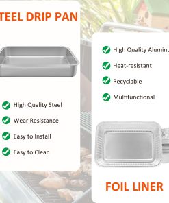 Piezas de Repuesto para Weber 93305 7515 6415. Paquete incluye una Bandeja de Captura de Grasa para Parrilla y 20 forros desechables de aluminio para placas de goteo de parrilla 6415. Forma sencilla de mantener tu parrilla limpia y lista para usar, cuando haces parrilladas al aire libre, estas bandejas recogerán la grasa y gotas de la barbacoa. Mantén tu parrilla limpia y lista para usar, recoge la grasa. Fácil de Limpiar: Solo coloca el forro de aluminio desechable dentro del recolector de grasa. Una vez que el forro esté lleno, simplemente tíralo a la basura y reemplázalo con un nuevo forro de placa de goteo para gestionar la grasa fácilmente. Piezas de Repuesto para parrillas de gas Spirit, Genesis 1000-5500, Genesis Silver/Gold/Platinum, Serie Genesis II, Platinum I/II, y Summit, Weber Spirit e-210 e-220 e-310 e-320 e-330 Genesis II e-310 e-315 e-325 e-330 e-335. NO COMPATIBLE CON: Modelos de parrillas Spirit con panel de control lateral o frontal después de 2008, parrillas de gas Summit Gold/Platinum de 6 quemadores.