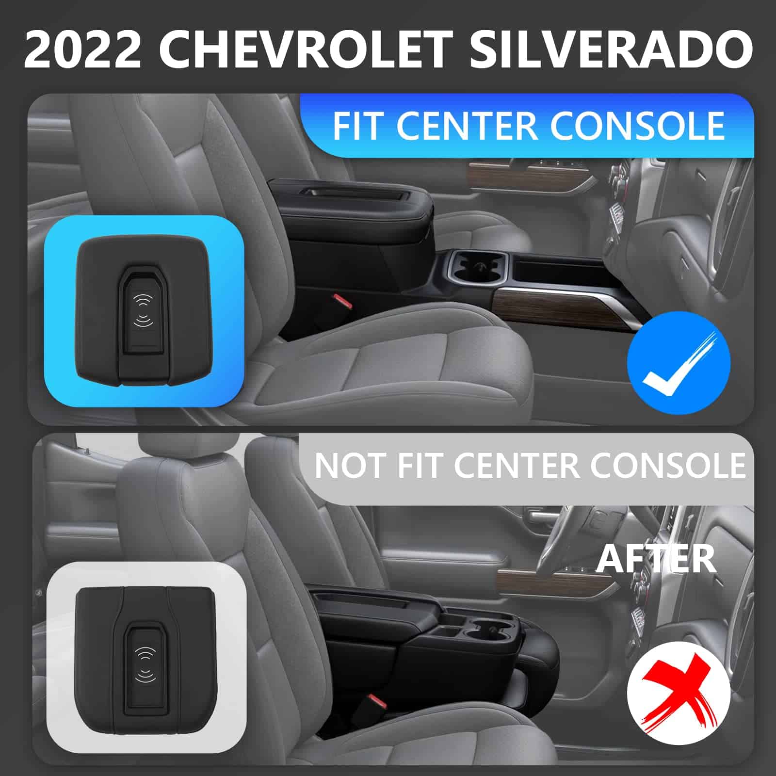 Comodidad Exclusiva: Nuestra cargadora inalámbrica para Chevy Silverado 2022 se ajusta al modelo de auto con asiento de banco dividido. Es compatible con el modelo 2022 de Chevy Silverado 1500, GMC Sierra 1500, Chevy Silverado 2500HD 3500HD, y GMC Sierra 2500HD 3500HD. Hemos actualizado el conector, que se ajustará mejor a su auto. Por favor, confirme cuidadosamente el modelo específico de su auto y el año antes de comprarlo. Luz de Respiración: Al usar la cargadora inalámbrica, puede encontrarse con diferentes destellos de luz de respiración. La luz de respiración indica que la almohadilla de carga está en carga normal. Si la luz de respiración de su almohadilla de carga destella rápidamente, indica que la cargadora inalámbrica está en carga anormal. Si no hay luz de respiración en absoluto, indica que la cargadora inalámbrica no funciona en absoluto. Función: Nuestra almohadilla de carga rápida de 15W le ayudará a cargar su teléfono de forma más segura y rápida. Puede cargar un teléfono con funda. También le proporcionamos dos piezas de almohadilla de silicona, que ayudarán a proteger la cámara de su teléfono. Su teléfono no se deslizará durante la carga. Fácil de Instalar: No hay dificultad para instalar nuestra cargadora inalámbrica. Le proporcionamos el video de instalación, y puede instalar su almohadilla de carga inalámbrica con él. Garantía: Le brindamos un servicio satisfactorio. El envío es gratuito. Si tiene problemas de instalación con la cargadora inalámbrica, por favor envíenos un correo electrónico. Le proporcionaremos servicio postventa.