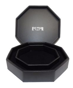 Esta bandeja de dados es una excelente inversión gracias a su construcción rígida y envoltura de cuerina de calidad. Esta bandeja de dados es una bandeja de 8 lados, con una medida de aproximadamente 8 pulgadas de borde a borde por dentro.