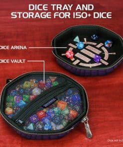 1. EXTERIOR FORJADO DE PIEL DE DRAGÓN: Actualiza tu arsenal con el material de escamas de dragón de mayor calidad (disponible en varios colores) y muestra tu Edición de Coleccionista con el llavero de metal incluido. 2. DISEÑO DE ALMACENAMIENTO DE DADOS 2 en 1: Un exterior resistente de «Piel de Dragón» reforzada con un diseño con cremallera resistente que mantiene ambas partes del estuche juntas, pero se separa fácilmente para un uso conveniente en la mesa. 3. ALMACENAMIENTO DE DADOS FORTIFICADO: Cremalleras de alta resistencia y una sección cubierta espaciosa con forro resistente a los arañazos almacenan hasta 150+ dados en una ubicación de fácil acceso para tu próxima noche de juegos. 4. ENTRA EN LA ARENA DE DADOS: La otra mitad del estuche cuenta con una bandeja de lanzamiento de dados forrada suavemente con paredes altas que evitan que los dados se salgan. ¡Lo suficientemente grande para que toda la mesa lo use! 5. SE ADHIERE A LAS BOLSAS: Este estuche/bandeja de dados se sujeta fácilmente y está diseñado para funcionar con todas nuestras bolsas de la Serie Tabletop || NO INCLUYE DADOS O ACCESORIOS