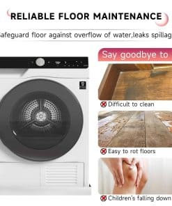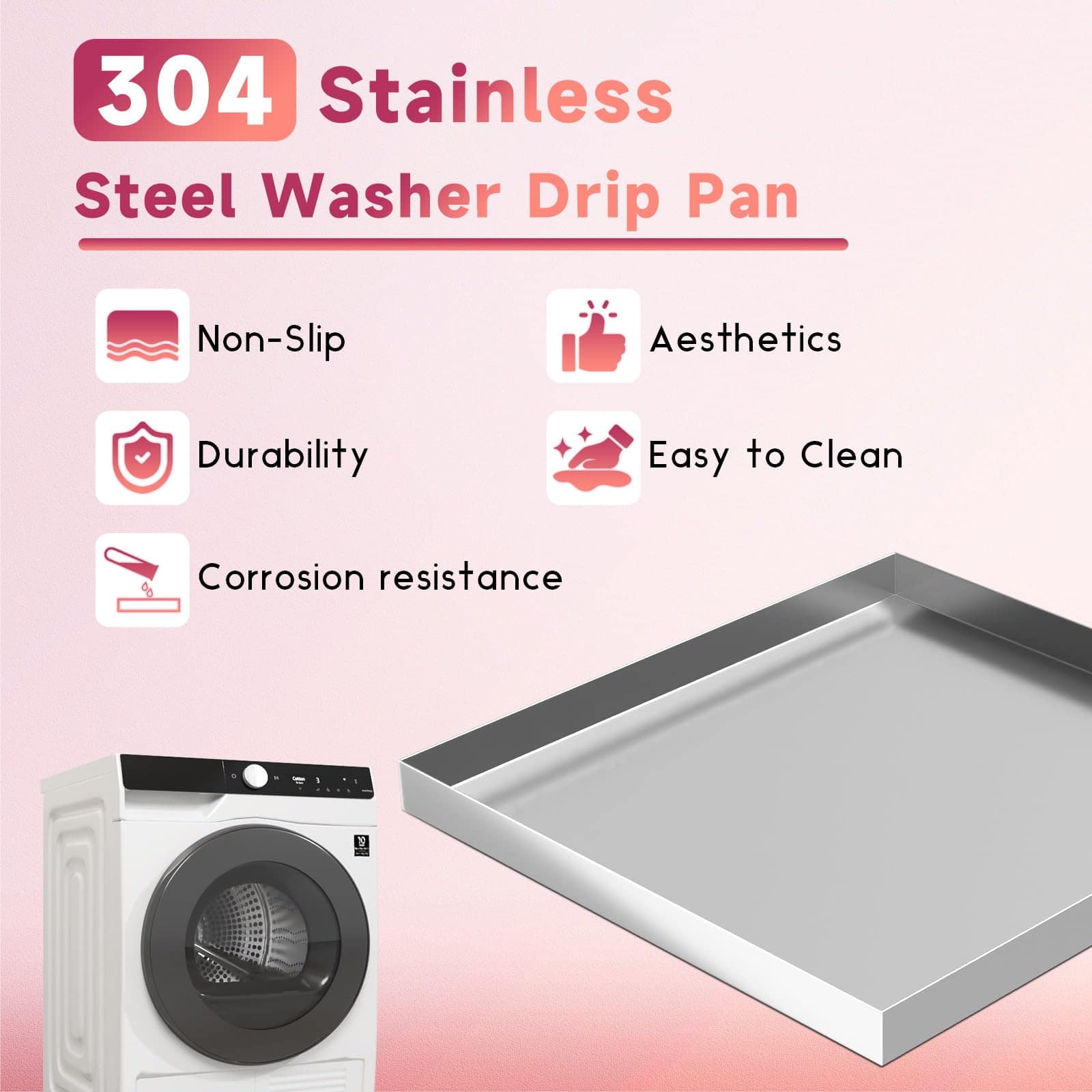 Mantenga su piso de lavandería limpio y seco. El agua estancada en el piso crea antiestéticas manchas de agua, también puede arruinar valiosos pisos de madera y aflojar las baldosas del piso, lo cual cuesta mucho dinero, y lo más importante es que el agua que se filtra puede provocar fácilmente resbalones y causar consecuencias irreversibles. Nuestras bandejas de desagüe son la solución perfecta. Fácil de limpiar: La superficie de la bandeja de la lavadora es muy suave, y es fácil limpiar la bandeja de desagüe, simplemente límpiela con una esponja o paño para absorber el agua que queda en la bandeja. No tienes que temer a rayar tus manos, todos los lados tienen un diseño de borde plegado, no es fácil rayar tus manos. Ampliamente utilizado: No solo se puede aplicar para prevenir fugas de agua en la bandeja de la lavadora/protección del piso de la lavadora, sino que también se puede utilizar en electrodomésticos como refrigeradores y secadoras y bandejas de goteo de repuesto para rangos.