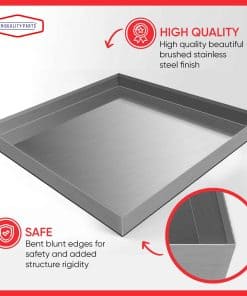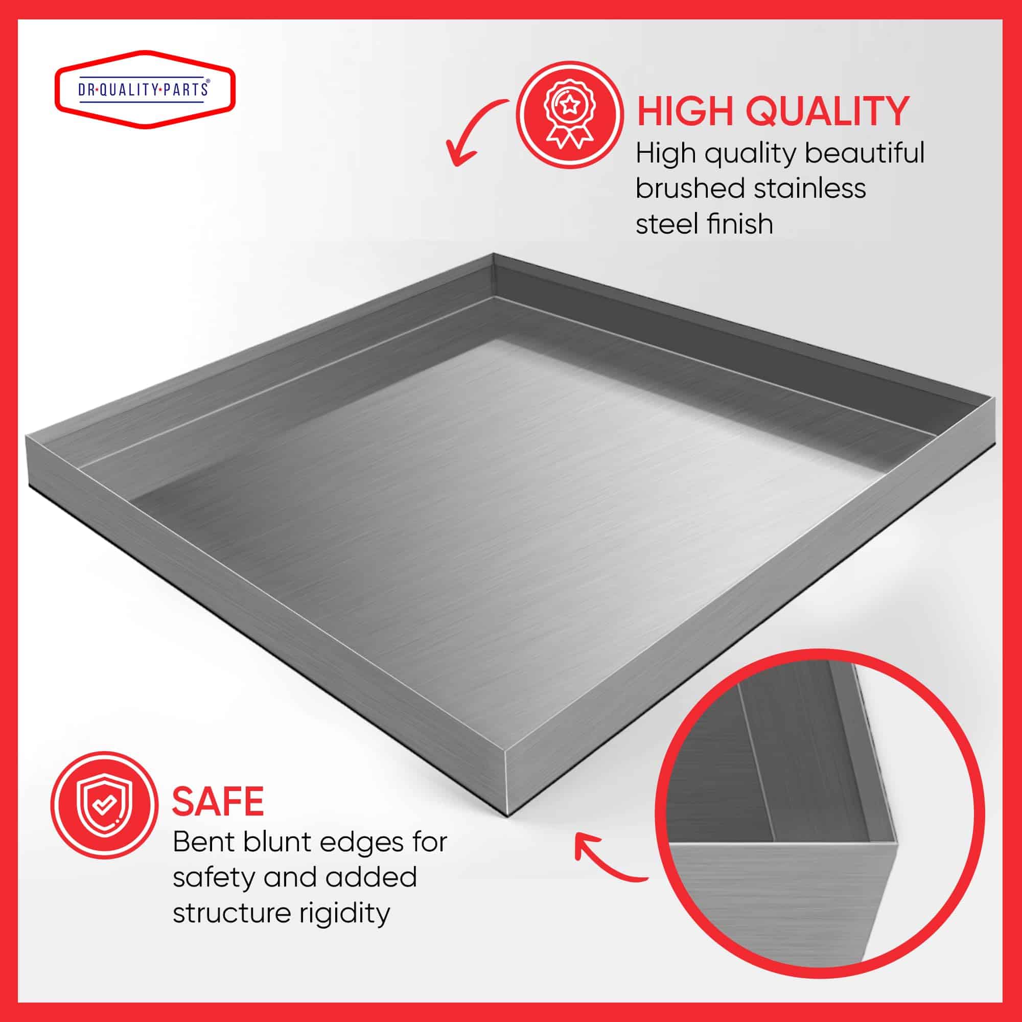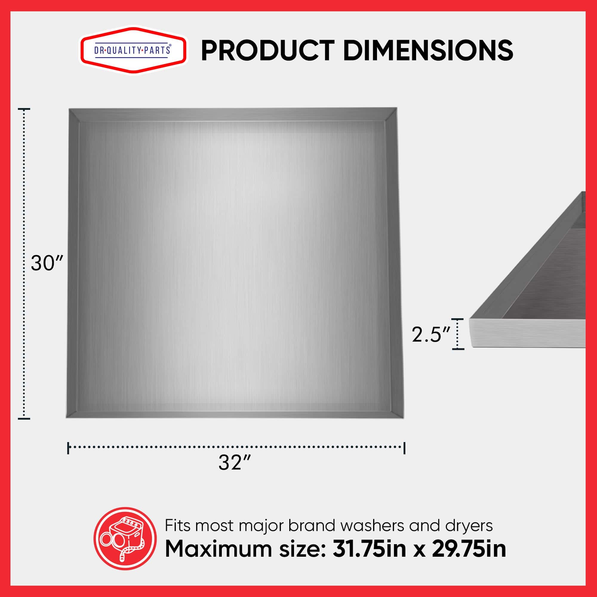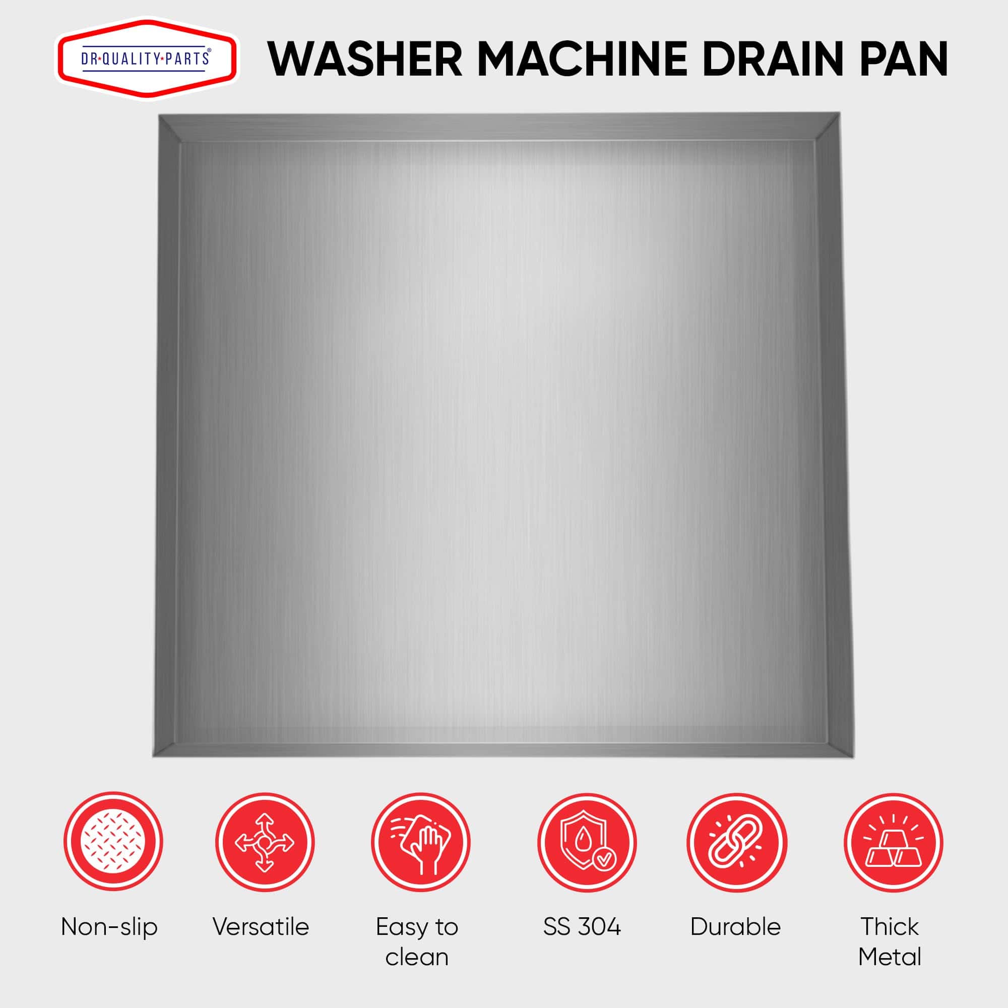 Bandeja de desagüe a prueba de fugas para lavadora. Acero inoxidable, acabado cepillado, resistente, esquinas soldadas. La bandeja no viene con un agujero de drenaje preperforado, por lo que puede colocarlo donde lo necesite. No es apta para electrodomésticos más grandes que 31.75″x 29.75″ pulgadas. Compatible con muchas marcas principales de lavadoras de carga frontal, incluyendo Samsung, LG, Whirlpool, GE, Frigidaire, Maytag, y más. Durará más que cualquier bandeja de plástico y se verá mejor que cualquier bandeja de drenaje galvanizada barata. ¡Mantén tus pisos seguros y tu lavandería luciendo genial, ordena hoy con nuestro envío rápido!
