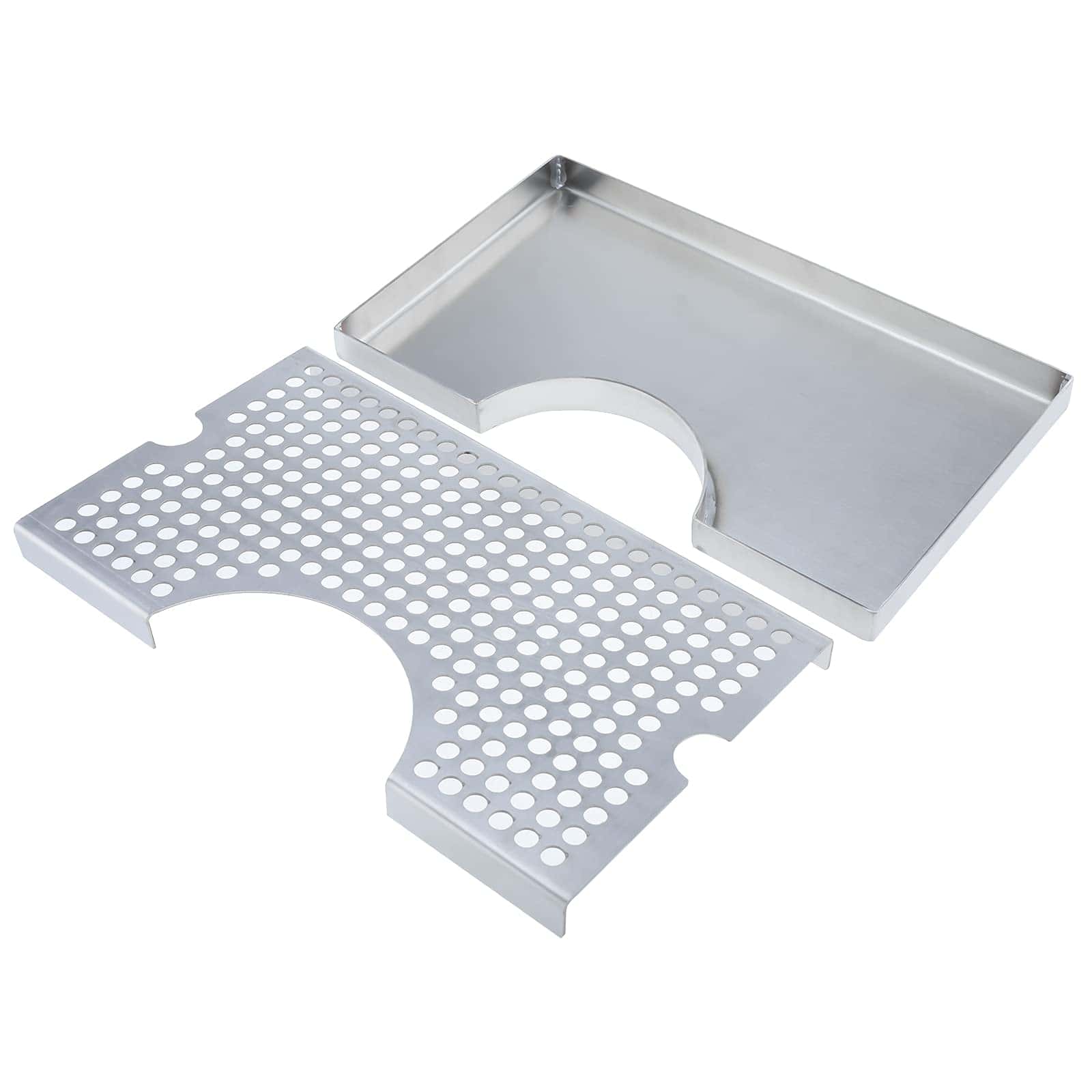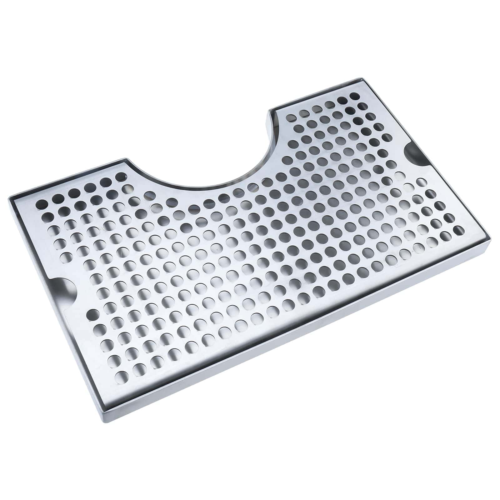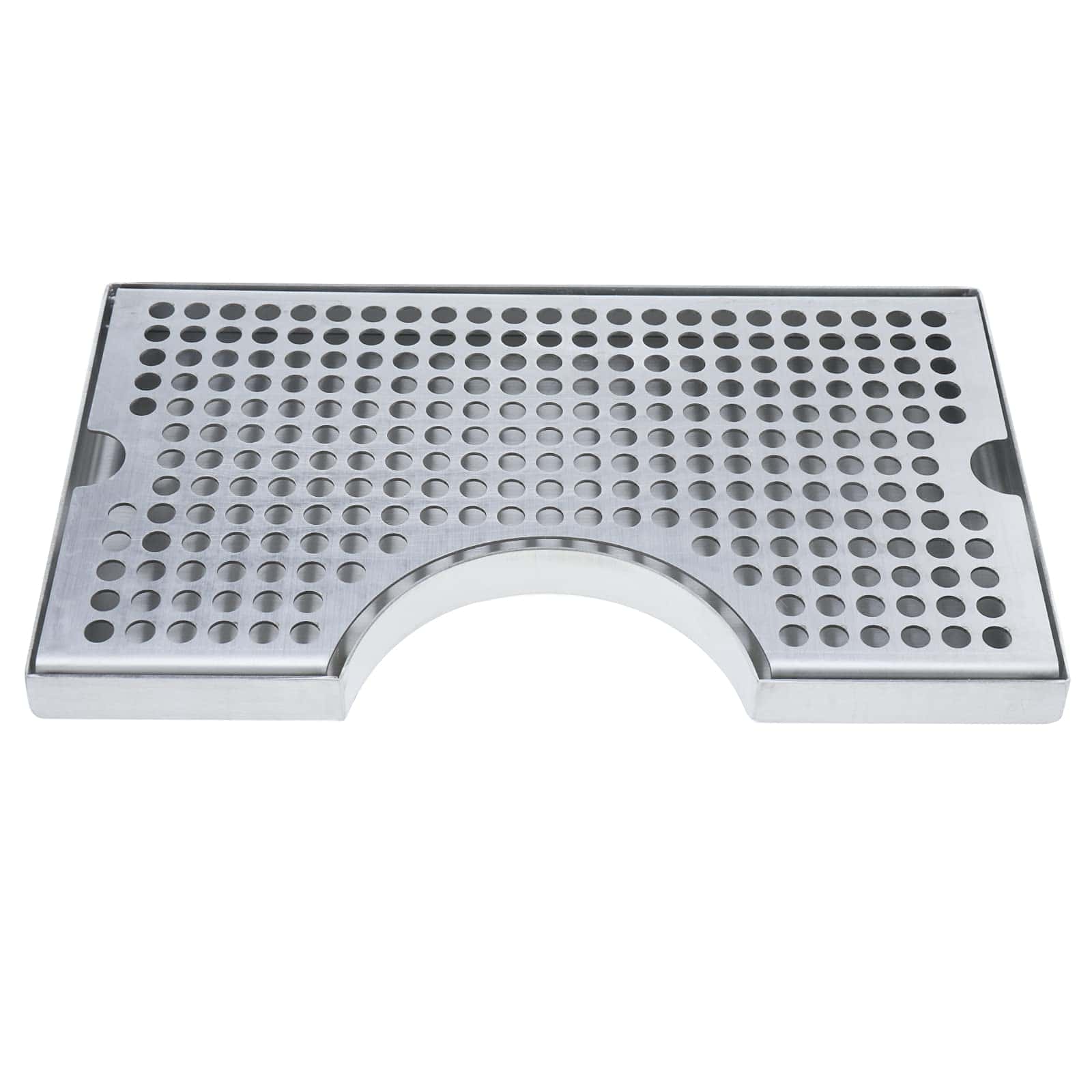 Características de la Bandeja de Goteo Troquelada: 1. Mantén tu bar limpio – La bandeja de goteo se puede utilizar para recoger la cerveza derramada del grifo o dispensador de cerveza, y mantener su encimera un lugar súper limpio y ordenado. Puede usarlo en una encimera de bar o en un kegerator. Ampliamente utilizado para restaurantes, salas de grifo, cocinas y estaciones de bar en casa. 2. Material de alta calidad – Esta bandeja de goteo troquelada está hecha de acero inoxidable de alta calidad resistente a la corrosión y al óxido, con una apariencia elegante y brillante. 3. Fácil de limpiar – Esta bandeja de goteo para cerveza tiene una cubierta extraíble, muy conveniente para la limpieza. Solo necesita vaciar la bandeja y lavarla con agua. Es un accesorio ideal para kegerator o torre de cerveza tanto para interiores como para exteriores. 4. No necesita perforar agujeros – Coloque esta bandeja de goteo troquelada en la parte superior de las encimeras de bar o debajo del grifo para recoger el exceso de líquidos o bebidas. No es necesario perforar agujeros, para no dañar esa maravillosa y costosa encimera. 5. Apto para Brida de Base de Torre de 3″ – El troquelado de esta bandeja de goteo para cerveza tiene una dimensión de 5″ x 1.75″, y la bandeja de goteo tiene una dimensión de 12″ L x 7″ W x 3/4″ H. Esta bandeja de goteo para cerveza troquelada encaja en la base de torre de 3″, la mayoría de las torres de grifo individual, la torre de cerveza de doble grifo y las torres de dispensador de cerveza de triple grifo.