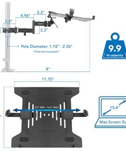 – Compatible con laptops de hasta 15.6″ – Inclinación: + / – 30 grados – Giro + / – 180 grados – Capacidad de peso: 9.9 lbs – Hecho de acero de alta resistencia con recubrimiento en polvo duradero.