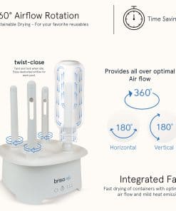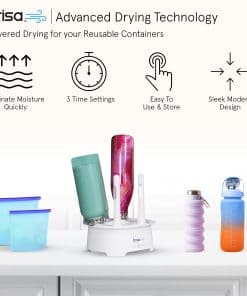 La Bandeja de secado Brisa tiene cuatro postes de secado que canalizan rápidamente y a fondo el aire caliente directamente para secar rápidamente tus contenedores lavados. Selecciona tu tiempo preferido de 10, 20 o 30 minutos con un simple botón. Esta bandeja de secado cuenta con un ventilador integrado y una emisión de calor suave, ¡haciendo que el secado sea completo! ¡Seca la humedad residual! Extiende la vida de los reutilizables y protege tu salud. Esta bandeja de secado ofrece funcionalidad y conveniencia. Esta bandeja de secado alimentada ofrece un diseño moderno que complementa cualquier decoración de cocina. Cuando no está en uso, la bandeja se puede desmontar y guardar fácilmente, convirtiéndola en una adición práctica y atractiva para tu cocina. La Bandeja Brisa hace que el secado sea muy sencillo. ¡Mantente comprometido a reducir los plásticos de un solo uso, crea una cocina ecológica y apoya un planeta más saludable!
