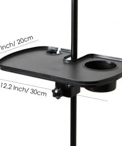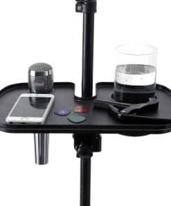 – Bandeja de gran tamaño (12.3 x 7.9 pulgadas) diseñada para organizar de forma fácil tus pequeños accesorios durante tus actuaciones en conciertos. Cuenta con posiciones especiales para tu micrófono y taza, brindándote comodidad y practicidad.