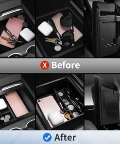 La bandeja organizadora de consola central TSLDRV 2025 es la solución perfecta para mantener tu Tesla Model 3 Highland o Model Y Juniper mucho más organizados y limpios. Diseñada específicamente para adaptarse a estos modelos, se ajusta perfectamente a la consola original y ofrece un diseño de doble capa que proporciona más espacio de almacenamiento y privacidad. Con compartimentos designados para diferentes artículos, podrás mantener tus elementos esenciales organizados y favorecer la accesibilidad durante la conducción. La instalación es rápida y sencilla, asegurando una fijación firme incluso en situaciones de manejo brusco. Fabricada con material ABS sólido, esta bandeja es resistente y fácil de limpiar, con alfombrillas de PVC lavables que mantienen tus objetos en su lugar y reducen el ruido al conducir. Además, con nuestro excelente servicio posventa de 2 años, estarás respaldado en caso de cualquier problema. Mantén tu Tesla ordenado y con un look elegante con la bandeja organizadora de consola central TSLDRV 2025.