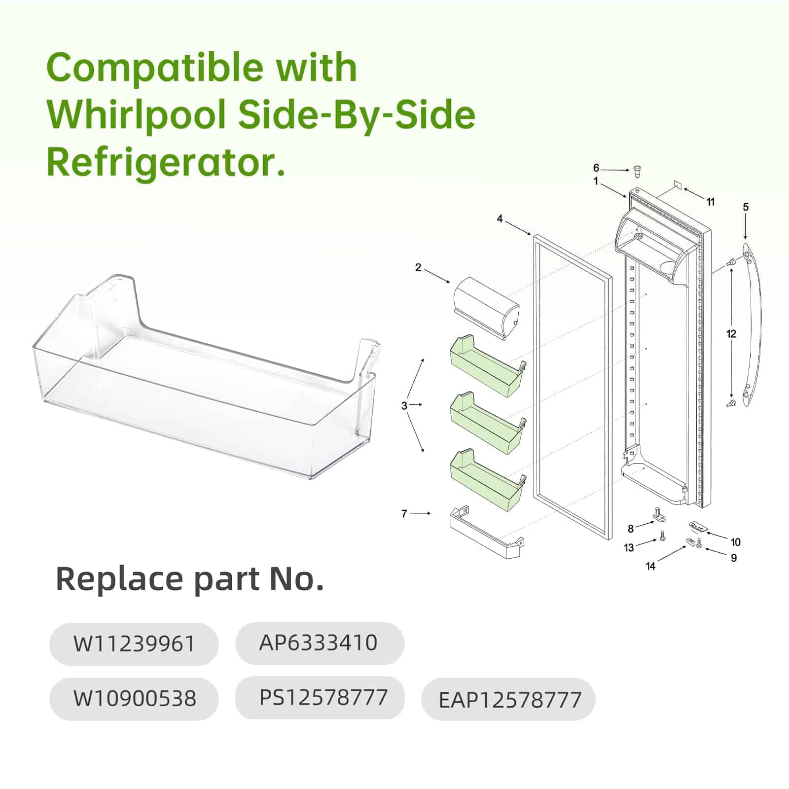 3. Modelos reemplazables La bandeja para estante de puerta W11239961 reemplaza con precisión las partes de los modelos W10900538, 4591452, AP6333410, PS12578777, EAP12578777.