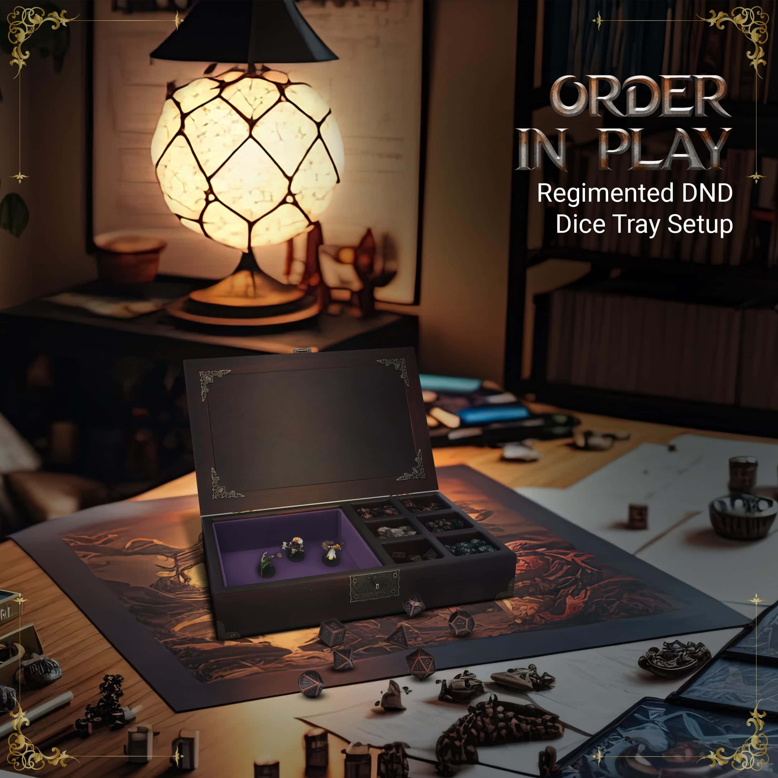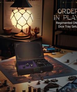 1. ALMACENAMIENTO DE DADOS – Diseñada especialmente para jugadores de DND, esta caja de dados es la herramienta definitiva para llevar tu juego al siguiente nivel. Mezclando perfectamente funcionalidad y estética, nuestra bandeja de dados dnd es el único accesorio que necesitarás para mejorar tus sesiones de juego.