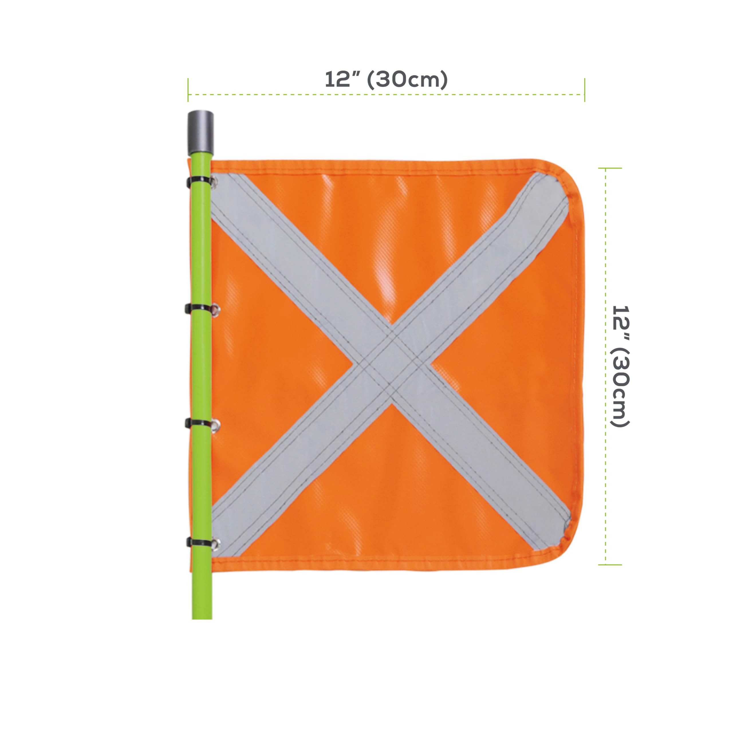 4. Piezas Incluidas: 1x Poste Base para mantener la estabilidad, 1x Poste Medio para aumentar la altura y maximizar la visibilidad, 1x Poste Superior para sujetar la bandera, 1x bandera de PVC duradera con Cruz Reflectante para advertir a los vehículos que se acercan, 1x Base para garantizar una instalación rápida.