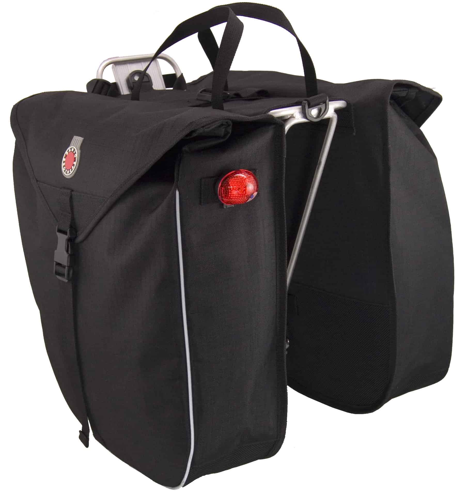 Banjo Brothers 01090 Saddlebag Panniers es un diseño de alforjas de una sola pieza que es fácil de poner y quitar. Es ideal para ir al trabajo o para un viaje de fin de semana a un bed and breakfast cercano. Las bolsas tienen un perfil bajo, por lo que no te frenarán. También cuentan con correas de sujeción en la parte superior para sujetar equipo adicional. Tiene una capacidad de 1500 pulgadas cúbicas y está fabricado con tela de ripstop y balístico en las áreas de desgaste elevado en el interior. Cuenta con una correa individual para conectar o quitar las alforjas y 360 grados de acentos reflectantes para mantenerte visible mientras montas.