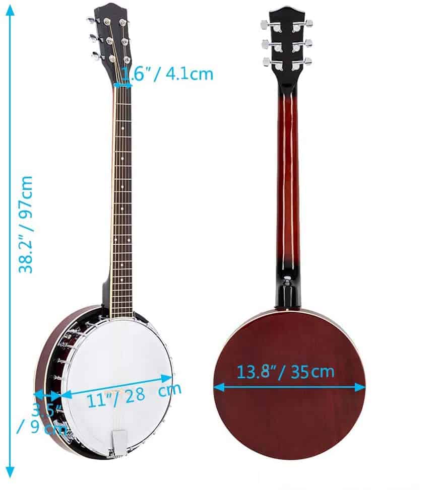 Banjo de 6 Cuerdas con 24 Soportes y Espalda Cerrada con