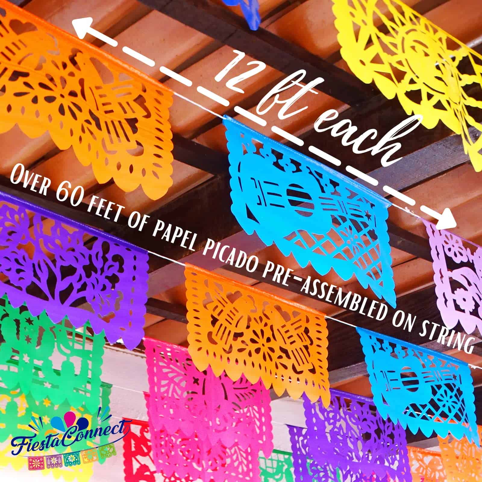 Los Banners de Papel Picado son un elemento esencial para cualquier fiesta mexicana. Este paquete de 5 banners incluye tamaños medianos que son perfectos para decorar tanto interiores como exteriores. Hechos de plástico resistente, estos banners son duraderos y pueden soportar diversas condiciones climáticas. Además, son fáciles de usar, ya que vienen pre-ensamblados en hilo, lo que facilita su colgado. Puedes cortarlos a la longitud que desees, atarlos juntos para hacer una sola cuerda larga, cruzarlos o colgarlos en filas para crear una decoración única y colorida. Los diseños folclóricos auténticos mexicanos le darán a tu fiesta un toque auténtico y alegre. Con la garantía de que estos banners son diseñados en los Estados Unidos y fabricados en México por artesanos locales, puedes comprar con confianza sabiendo que estás adquiriendo un producto de alta calidad. Celebra tu próxima fiesta con auténtica decoración mexicana gracias a los Banners de Papel Picado de FiestaConnect.
