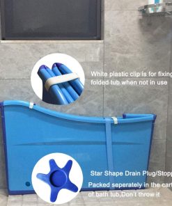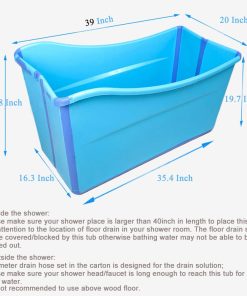 Baño Plegable Grande para Bañera W WEYLAN TEC para Niños Gemelos Adulto Azul (menos de 5’7″ 145 libras) Información de tamaño: 39 pulgadas (L) 20 pulgadas (W) 22.8 pulgadas (H) en la parte superior, 35.4 pulgadas (L) 16.3 pulgadas (W) en la parte inferior, la parte inferior es más angosta que la parte superior. Por favor, permita un ligero error debido a la medición manual. ¿Dónde colocará esta bañera? 1) Dentro de la ducha: Asegúrese de que su lugar de ducha sea más grande que 39 pulgadas de longitud para colocar esta bañera. 2) Fuera de la ducha: Comuníquese con el vendedor para obtener un juego de manguera de drenaje de 1 metro para la solución de drenaje. Más características: Diseño de gran tamaño, puede sostener a dos niños al mismo tiempo, puede sostener a un adulto pequeño menos de 5’7″ 145 libras con las piernas dobladas. Diseño de apoyo alto para apoyar la cabeza. Resistente y duradero, hecho de material de seguridad grueso, calificado para uso pesado. Base antideslizante que evita resbalones y deslizamientos. Excelente efecto de aislamiento, mantiene el agua caliente por mucho tiempo. Paquete incluye: 1 X Bañera Grande Azul, 2 X Tapón de drenaje inferior (goma en forma de estrella), 2 X Clip de plástico blanco (más fácil de plegar la bañera) + 1 X Correa de velcro (ayuda a plegar completamente la bañera). Nota: 1. Nunca deje al niño desatendido. 2. La bañera se abrirá completamente y se mantendrá plana después de llenarla de agua. 3. La pared de la bañera será lo suficientemente resistente como para empujarse desde abajo cuando esté llena de agua. 4. El tapón debe instalarse desde el interior de la bañera en la parte inferior, no desde el exterior. 5. Los tapones, clips y correa se suministran con la bañera en la caja de cartón, comuníquese con el vendedor si se pierden o se rompen. 6. La manguera de drenaje no se suministra con la bañera, comuníquese con el vendedor si necesita este accesorio adicional. Cualquier pregunta, comuníquese con nosotros vendedor, ¡haremos lo correcto para usted!