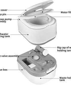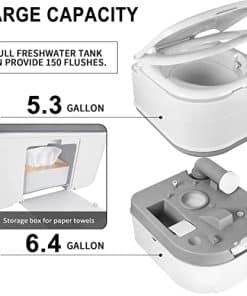 1. GRAN CAPACIDAD CON ALMACENAMIENTO EXTRA DE PAPEL- El baño portátil de viaje Mupera tiene una gran capacidad de 6.4 galones (24 L) para almacenamiento de aguas residuales, suficiente para toda la familia. La capacidad del tanque de agua fresca de 5.3 galones (20 L) te permite hacer unos 150 enjuagues. El nuevo inodoro portátil Mupera cuenta con un diseño de espacio de almacenamiento adicional para papel higiénico o toallas de limpieza. Este inodoro portátil de viaje en RV es imprescindible y te acompaña durante todo el viaje.