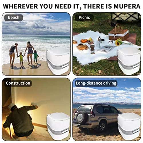 5. USO EN VARIOS ESCENARIOS – El inodoro portátil de Mupera se puede utilizar en muchos escenarios con instalaciones sanitarias insuficientes para operaciones de campo, como campamentos, picnics, sitios de decoración, hogares, caravanas, remolques, autos, RV, barcos, hospitales, construcción de sitios y eventos al aire libre, etc. Al mismo tiempo, estos inodoros portátiles también pueden servir a grupos especiales, como mujeres embarazadas, personas mayores y pacientes con movilidad limitada.