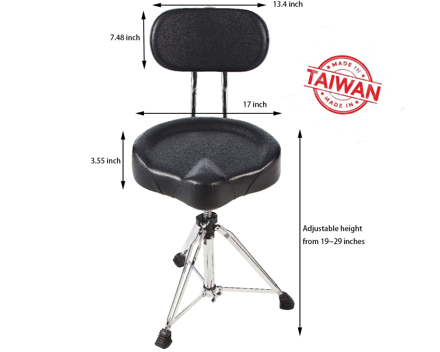 Altura Ajustable de 19″ a 29″ Capacidad de Peso de 400 lbs Patas Dobles más Gruesas para Mayor Excelencia y Durabilidad Asiento de Batería más Grande: 17 -15.5 Asiento, 3.55 Grosor Respaldo más Grande: 13.4 X 7.48 Pies de Goma Antideslizantes más Grandes, Excelente Estabilidad y Seguridad Diseño Plegable, Conveniente Para Guardar y Llevar al Escenario Libremente.