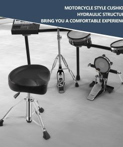La banqueta de batería Ramzi es la elección perfecta para bateristas que buscan comodidad y durabilidad. Con su base ajustable hidráulicamente, esta banqueta proporciona una altura personalizada para adaptarse a sus necesidades de juego. La superficie del asiento ampliado y envuelto en piel de alta calidad con espuma viscoelástica suave garantiza una comodidad superior durante horas de reproducción. Las patas de apoyo dobles con diseño redondeado ofrecen una estabilidad excepcional, y las almohadillas de goma antideslizantes protegen tanto la banqueta como su piso. Con una capacidad máxima de peso de 450 lbs, esta banqueta es resistente y confiable para cualquier baterista. ¡Disfrute de una experiencia de reproducción cómoda y estable con la banqueta de batería Ramzi!