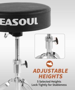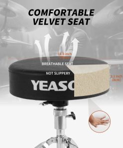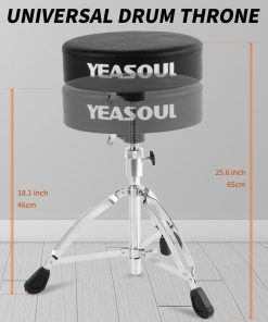 Banqueta de Batería YEASOUL Asiento de Batería Acolchado Silla de Batería Taburete de Baterista Ajustable en Altura de Doble Refuerzo (Y03) – La banqueta de batería YEASOUL está diseñada para brindar comodidad y durabilidad a los bateristas. Está rellena con una esponja de alta calidad que reduce la tensión en la espalda y las piernas durante largas sesiones de juego. Con una base de pierna de aluminio de doble refuerzo y un pie de goma más grande, la banqueta es sólida y duradera, manteniendo el asiento en su lugar sin deslizarse ni hundirse bajo peso. La altura se puede ajustar fácilmente de 18.1 a 25.6 pulgadas girando el perno de mariposa y la barra central del taburete. Viene con todos los accesorios necesarios y un par de baquetas, lo que facilita la instalación y el transporte. Este versátil taburete de batería se puede utilizar con una variedad de instrumentos musicales, siendo la mejor opción para baterías, pianos, guitarras/bajos y teclados. ¡Hazte con esta banqueta de batería YEASOUL y disfruta de tocar tu instrumento favorito con comodidad y estilo!