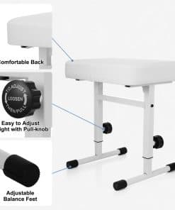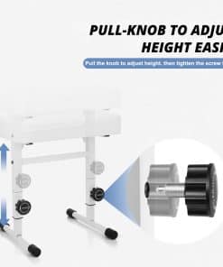 4. Altura ajustable: La banqueta de piano ajustable tiene 5 niveles de altura, que van desde 16.9 pulgadas a 21.8 pulgadas. Le da más opciones de altura.