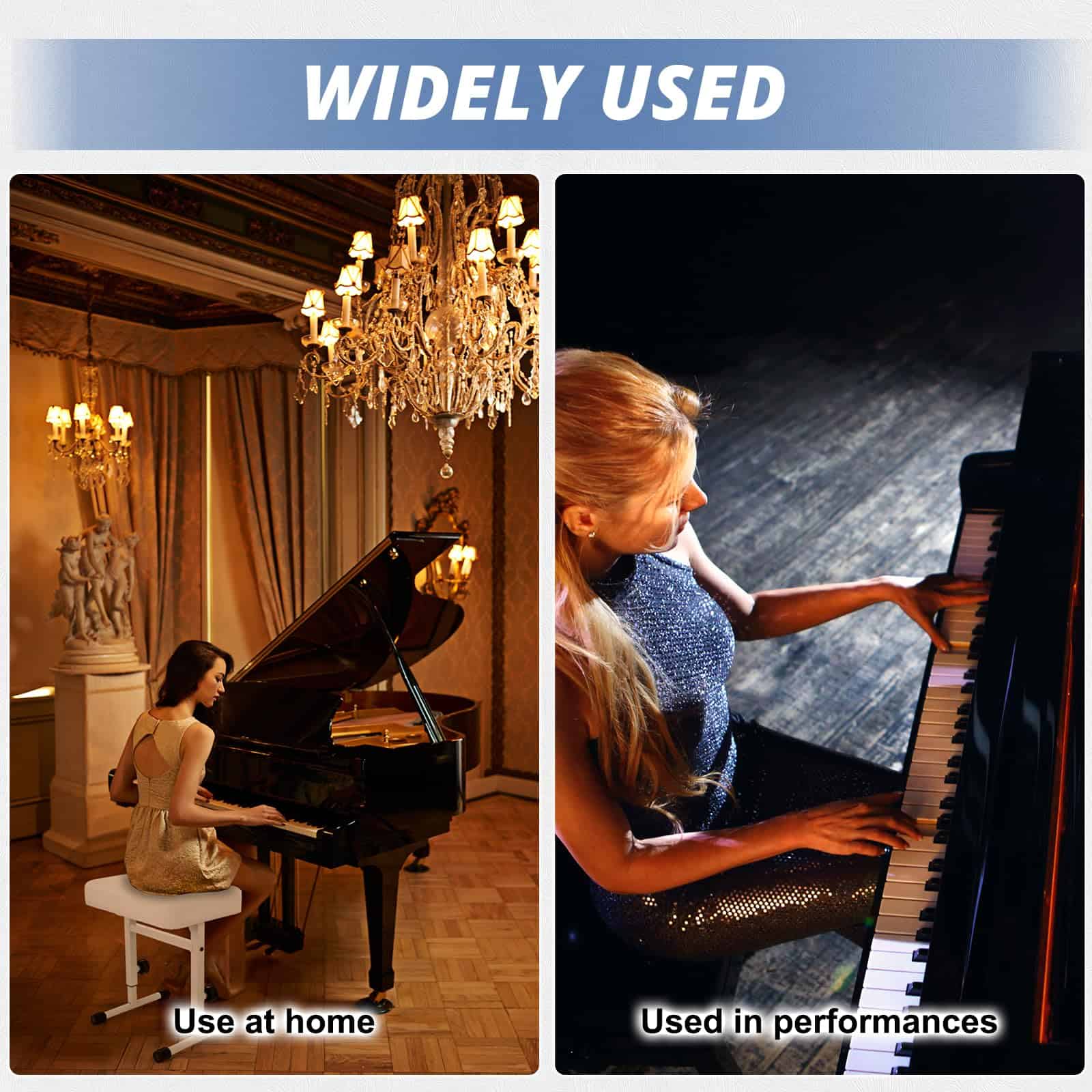 2. Cojín acolchado cómodo: La banqueta de teclado tiene un cojín de esponja de alta densidad engrosado. Le brindará un soporte cómodo y reducirá la fatiga física durante actuaciones a largo plazo.