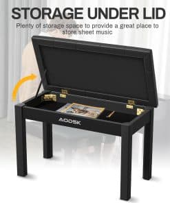 Banqueta de piano AODSK con cojín acolchado y compartimento