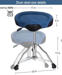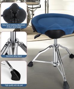 Banqueta de tambor AKOLT, Asiento de tambor resistente, Taburete de tambor hidráulico, Silla de tambor ajustable en altura de gamuza, Estilo motocicleta, para bateristas adultos Azul Oscuro. La banqueta de tambor en forma de sillín de gamuza + piel de poliuretano negra de alta calidad, colores contrastantes ricos, simple y elegante; la banqueta de tambor en forma de sillín es más ergonómica; el interior está relleno de esponja suave de alta densidad, es suave, transpirable, no se deforma fácilmente, tiene un fuerte soporte y reduce la fatiga. El marco de soporte de la silla de tambor está hecho de aleación de alta calidad con una dureza fuerte; la posición de conexión también es de aleación, lo que no causará problemas de explosión al soportar la gravedad; el trípode también utiliza un diseño de doble capa de soporte para proporcionar una mayor capacidad de carga, con una capacidad de carga mínima de 300 libras. La esponja de la silla de tambor tiene 9,5 cm de grosor, 43,5 cm de ancho y 39 cm de largo; la altura se puede ajustar de 17 a 24 pulgadas; el rango máximo del trípode es de 22 pulgadas; las dimensiones han sido calculadas con precisión para brindarte la mejor experiencia. Las patas de apoyo del trono de tambor están diseñadas con mangas antideslizantes, y la parte inferior también está diseñada con una línea para mejorar la fricción y la resistencia al deslizamiento con el suelo. Cuanto mayor sea la carga, mayor será la fricción. Si tienes alguna pregunta sobre el trono de tambor, no dudes en contactarnos y las resolveremos en un plazo de 24 horas.