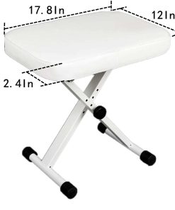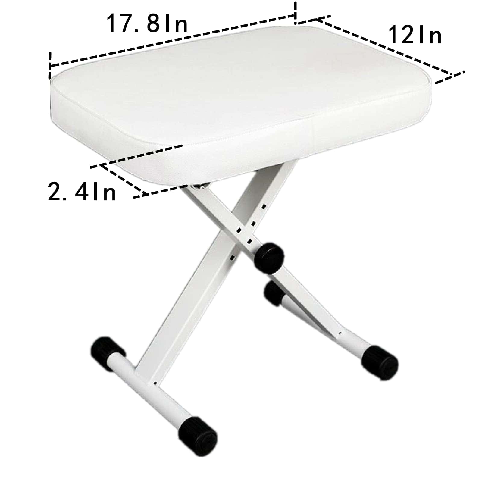 Banqueta de teclado de alta gama Miwayer, altura ajustable de 4 niveles, soporte fijo en forma de X, cómoda, suave y transpirable, que te permite disfrutar de un tiempo de juego cómodo durante mucho tiempo. Taburete de piano Miwayer está hecho de materiales de alta calidad, fabricado con tubo de acero grueso, soporte de asiento de madera maciza, esponja de alta elasticidad para mejorar la comodidad, envoltura de cuero para mayor comodidad y transpirabilidad. Banco rectangular de 17,8 x 12 con asiento acolchado de 2,5 pulgadas con ribete en el borde superior, altura ajustable de 4 niveles, la altura del asiento se puede ajustar de 14,5 a 20,8 pulgadas. Con un acabado negro definitivo y un asiento acolchado suave, este banco es totalmente ajustable para la comodidad individual y se pliega para su conveniencia de viaje. La altura es ajustable de 14,5 a 20,8 pulgadas. Especificaciones: Banqueta de teclado de alta gama Miwayer. Color: Blanco