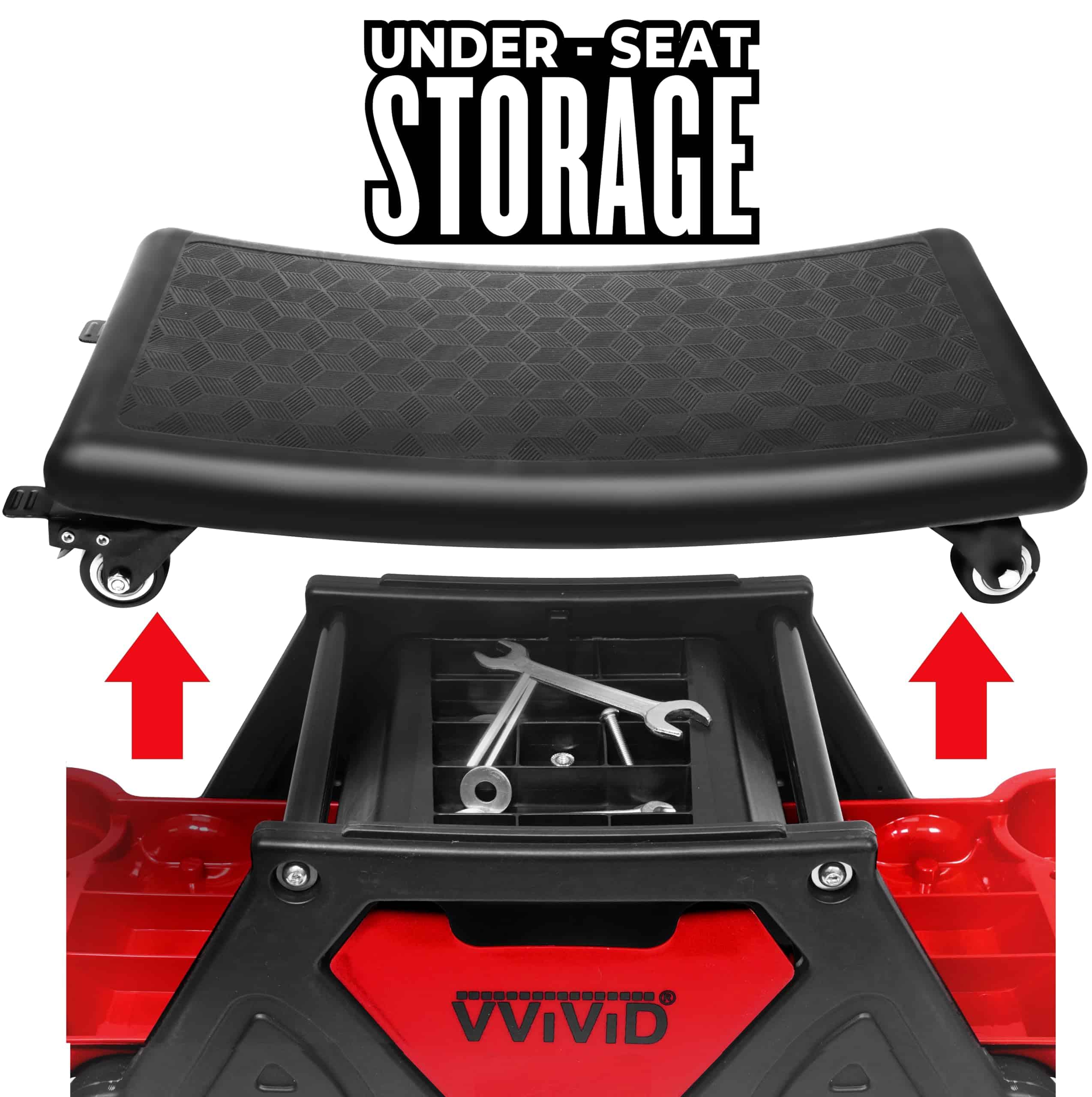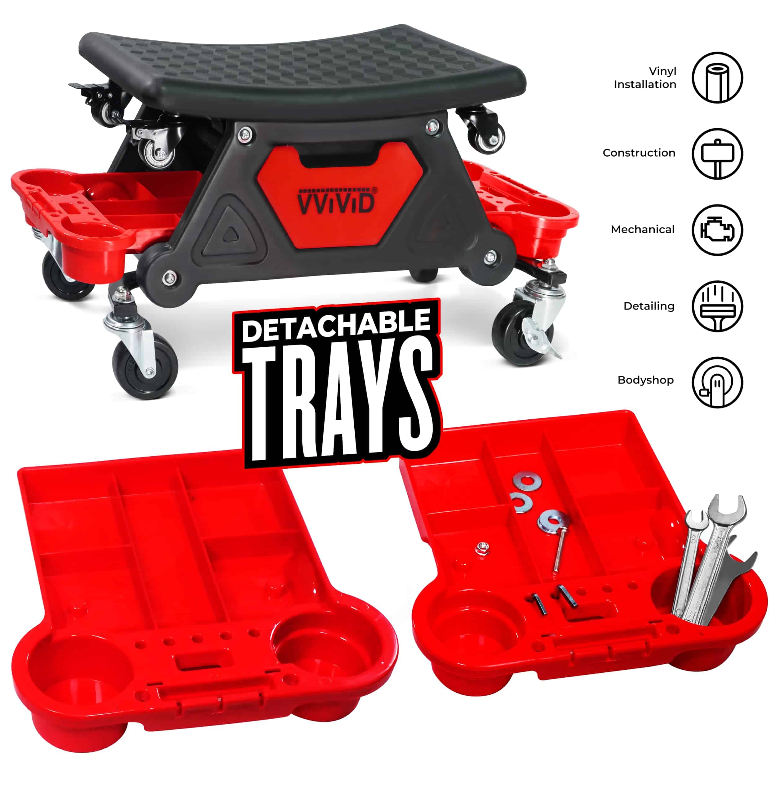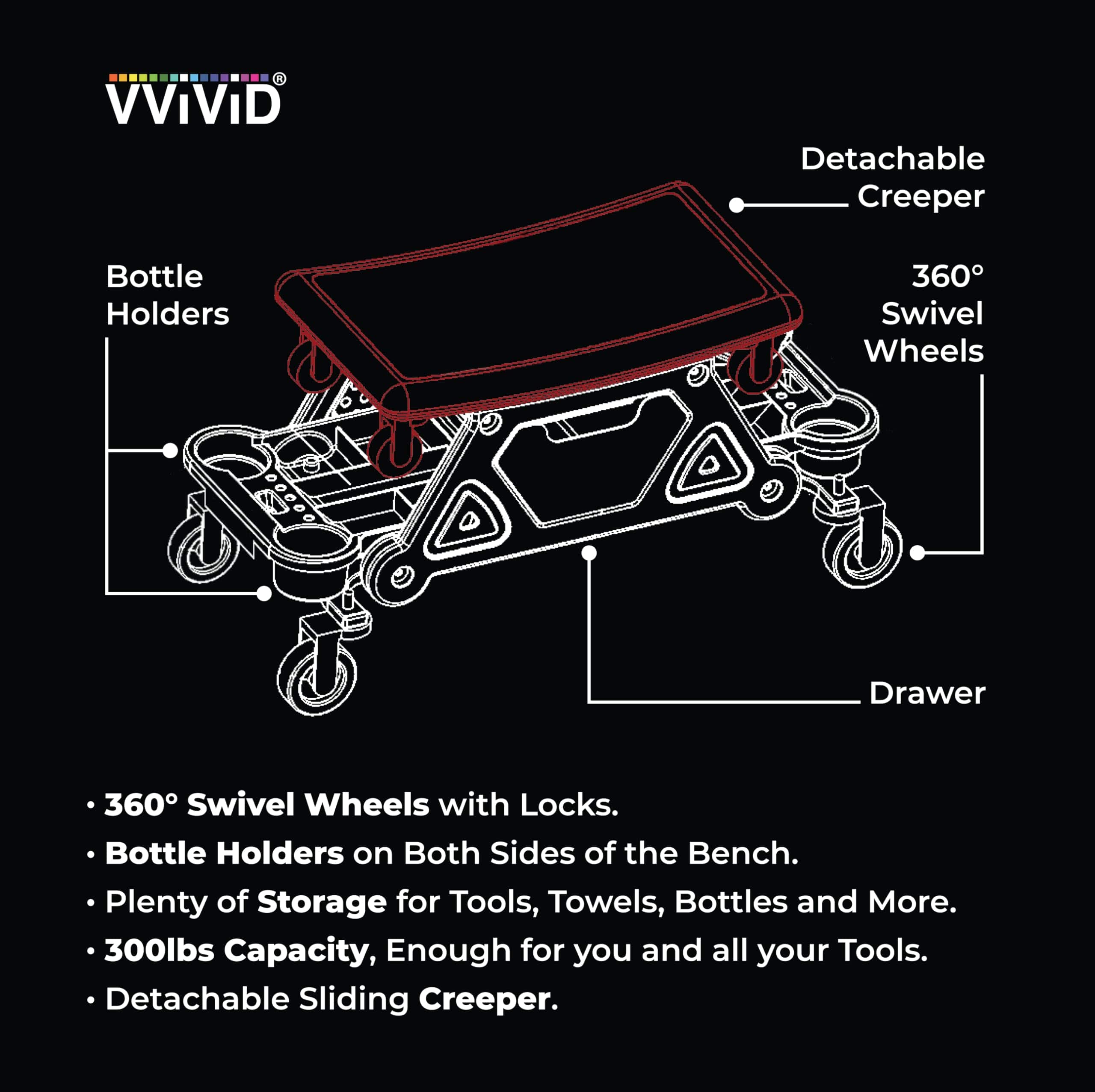 Eleva tu espacio de trabajo con la Banqueta Mecánica VViViD, una solución versátil para entusiastas y profesionales. Maniobra sin esfuerzo con ruedas giratorias de 360 grados con frenos para mayor estabilidad. Mantente organizado con porta botellas estratégicamente ubicados, bandejas de herramientas dedicadas y un cajón espacioso. El deslizador desmontable proporciona fácil acceso a la parte inferior de tu auto, mejorando la eficiencia. Ideal para varios proyectos, esta banqueta soporta hasta 300 libras, garantizando durabilidad y confiabilidad. Actualiza tu espacio de trabajo hoy mismo para obtener una movilidad, comodidad y rendimiento incomparables con la Banqueta Mecánica VViViD.