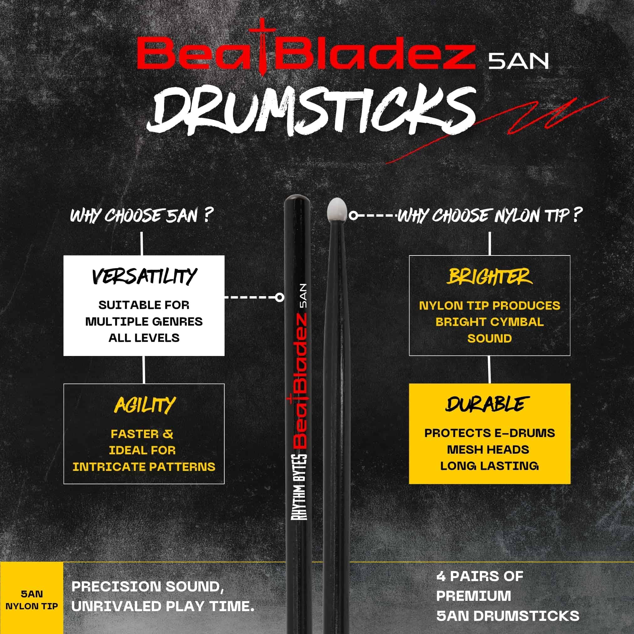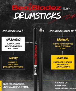 6. Adecuadas tanto para tambores acústicos como electrónicos. Perfectas para bateristas de todas las edades y niveles de habilidad, incluidos los niños. Eleva tu experiencia de percusión con las baquetas BeatBladez de Rhythm Bytes