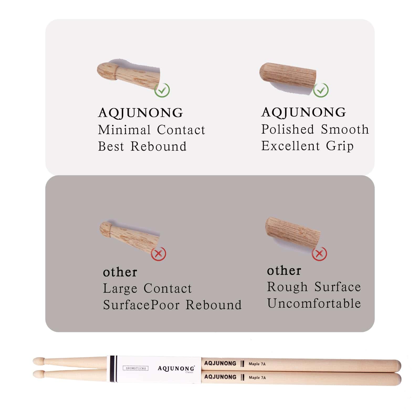 2. Nuestras baquetas de tambor están hechas de madera de arce dura. Tienen características de elasticidad, durabilidad y sensación cómoda. Pueden ser utilizadas por estudiantes, adultos y músicos de orquesta.
