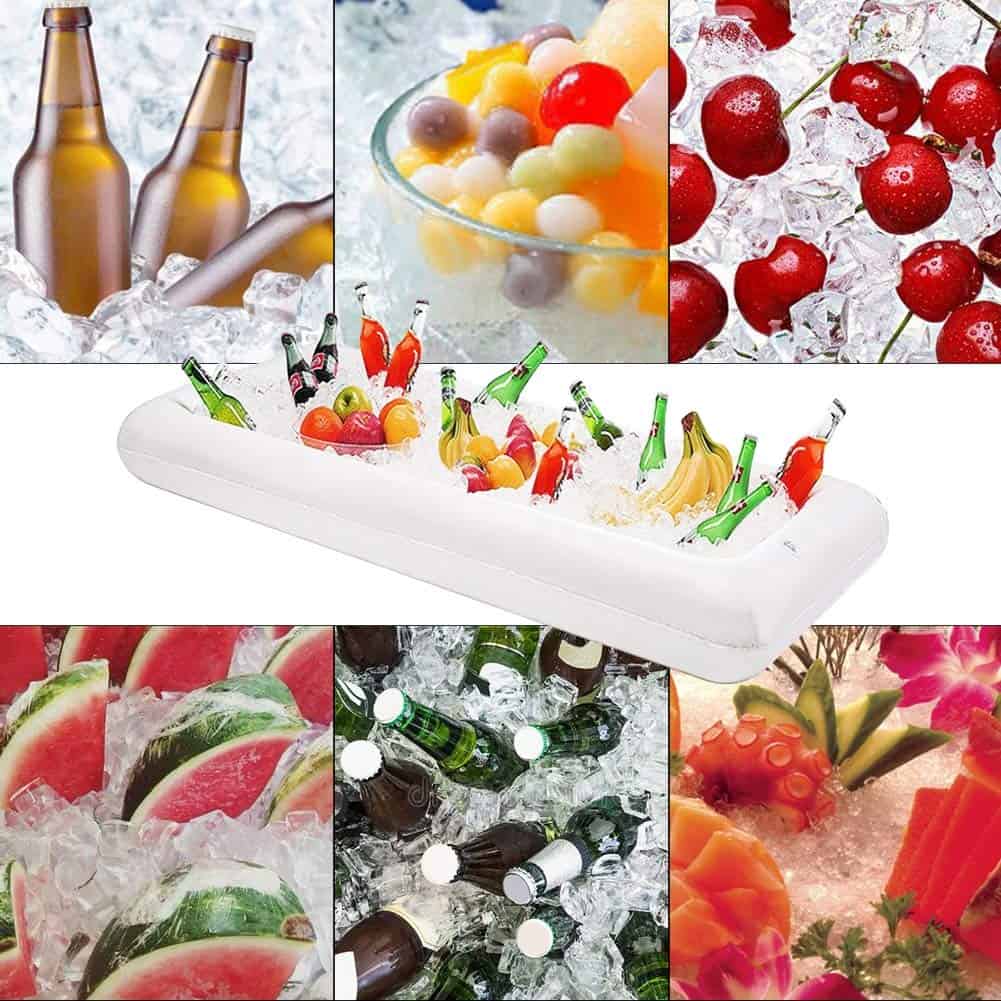 Bar de servicio inflable DR.DUDU, Paquete de 3 Contenedores de Enfriador de Ensaladas Buffet de Hielo para Alimentos y Bebidas con Tapón de Drenaje: