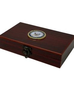 Abre la caja de madera manchada, y te encontrarás con dos barajas de cartas inspiradas en la Armada y cinco dados joya. Cada carta, desde el emblema de metal en la parte trasera hasta los rangos e insignias, resuena con el espíritu de la Armada. Ya sea que estés repartiendo una mano de poker, lanzando los dados o simplemente exhibiendo el set, es una forma segura de celebrar el legado de la Armada.