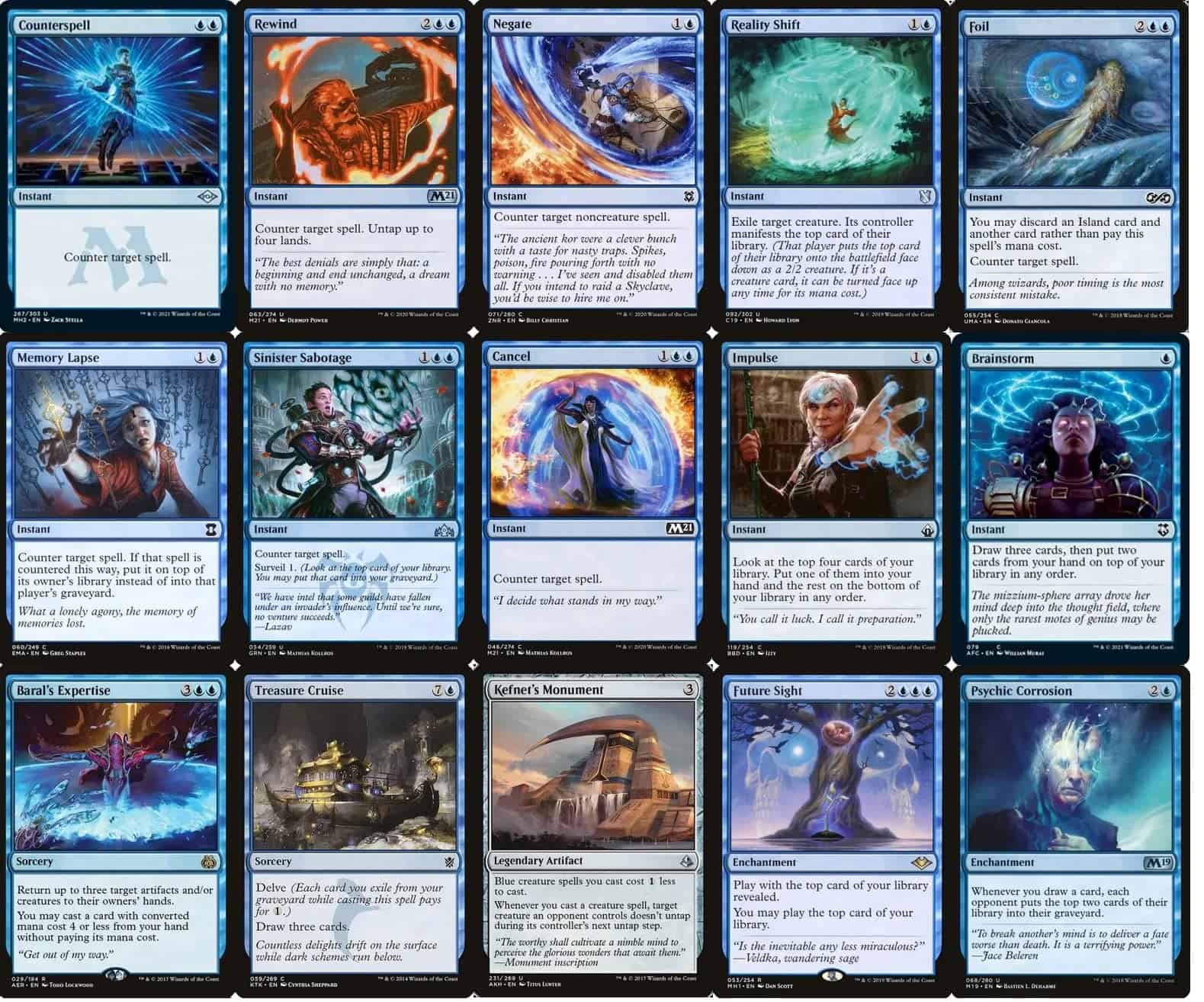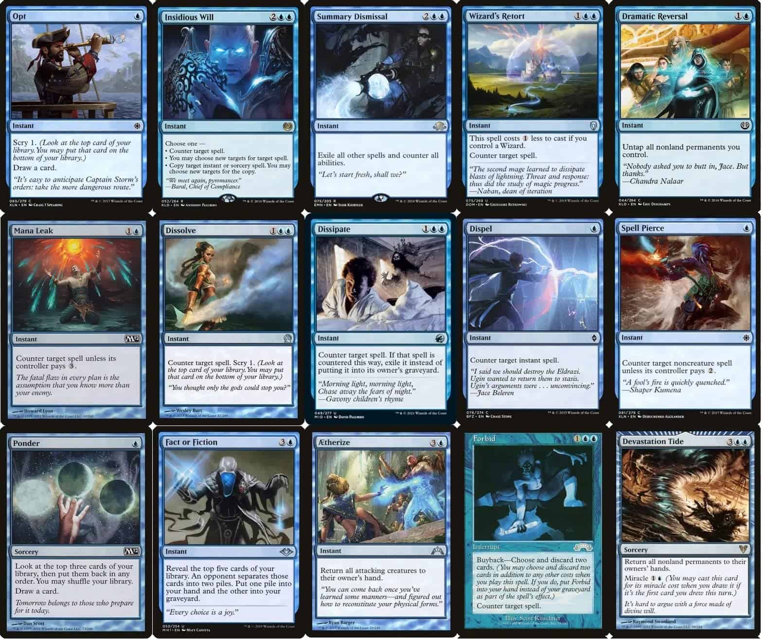 Este es un mazo de 100 cartas, mono azul, del comandante del mago (EDH). Este mazo es increíblemente divertido e interactivo. El mazo tiene dos objetivos principales: robar una gran cantidad de cartas y contrarrestar todas las principales amenazas de tu oponente, dejándolo completamente indefenso. Primero, la baraja de cartas. Azami, Dama de los Pergaminos es una comandante poderosa que te permite tocar a una de tus más de 25 criaturas mago en el mazo para robar una carta. Para el turno 5, fácilmente podrías encontrarte robando 3+ cartas adicionales por turno. El mazo cuenta además con varios otros hechizos de robo de cartas y criaturas que pueden robarte más cartas (como Arcanis) o hacer escarbar, permitiéndote llenar tu mano con los hechizos que necesitas. Después, los contrahechizos. Este mazo cuenta con más de 20 contrahechizos (instantáneos), y además una serie de tus criaturas añaden habilidades de contra a adicional, como Prodigio del Vacío, que puede convertir a cada uno de tus magos en un contrahechizo. Entre tus hechizos y criaturas de gran valor, puedes dominar y controlar absolutamente a tu oponente. Por último, las condiciones de victoria. Una vez que tu oponente está completamente controlado e incapaz de lanzar hechizos efectivos, tienes varias formas de ganar. Puedes vaciar la baraja de tu oponente usando mecánicas como la Toguer Tutoria de Esfinge o la Corrosión Psíquica. También puedes ganar sacando tu biblioteca, usando el efecto de Jace, Poseedor de Misterios, o el efecto de Maniaco de Laboratorio. Finalmente, tus magos pueden formar un ejército formidable y superar a tu oponente atacando en su mesa vacía (que has creado con toda tu magia de contra). Este mazo es PERFECTO para cualquiera que busque jugar un mazo temático, nuevo y divertido. Este mazo es notablemente poderoso y cuenta con varias criaturas y hechizos poderosos. ¡Este mazo ha sido probado y es notablemente fuerte, aparte de ser muy divertido de jugar!
