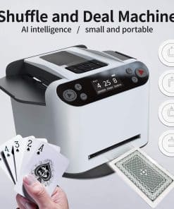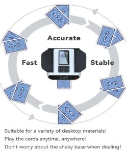 Diseñado para 1-8 jugadores, esta máquina cuenta con una configuración intuitiva y cuatro mini controles remotos para una función de llamado de cartas con un solo botón, agregando un giro emocionante a los juegos de póker. La bandeja puede contener 2 naipes, ampliable hasta 14, lo que permite jugar una variedad de juegos como UNO, póker y blackjack. La máquina repartidora de cartas cuenta con ruedas giratorias duales para una distribución más rápida y eficiente, además de una función de repartición de cartas de 360 que garantiza un reparto preciso y consistente en diversos entornos, mejorando la experiencia de juego en cualquier lugar, desde juegos casuales en casa hasta intensas noches de póker. Compacta y portátil, con un tamaño de solo 4.9 x 4.7 x 3.3 pulgadas y un peso de 1 libra, esta máquina es fácil de transportar y no abarrotará tu mesa de juego. La inclusión de cuatro mini controles remotos con una función de llamado de cartas con un solo botón hace que los juegos de póker sean más interactivos y divertidos, ofreciendo una experiencia versátil y agradable para todos los jugadores.
