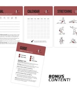 Construye Músculo, Pierde Grasa y Transforma tu Cuerpo con nuestras Tarjetas de Ejercicios de Pesas. ¿Quieres más opciones de ejercicios con pesas? ¿Ideas de entrenamiento? ¿Te falta fuerza y masa muscular sustancial? ¿Te gustaría tener un cuerpo más musculoso? ¿Te faltan ejercicios en tu rutina? ¿No estás seguro de qué hacer para trabajar músculos específicos? Nuestras Tarjetas de Ejercicios de Pesas te darán las herramientas para lograr la transformación personal de fitness saludable y enérgica que la mayoría sueña pero nunca realiza. Simplemente rota a través de 50 ejercicios (recomendamos elegir al menos 2 de cada sección de cuerpo completo, parte superior del cuerpo, núcleo e inferior del cuerpo, y realizar 3 series de 10-15 repeticiones) y alternar a diferentes ejercicios en cada entrenamiento para que nunca te aburras. ¡Incluso puedes barajar las tarjetas para variar tu rutina también! Estas tarjetas están respaldadas por Entrenadores Físicos Certificados con más de 15 años de experiencia que han ayudado a las personas a lograr resultados serios y transformaciones corporales completas. Nuestras Tarjetas de Ejercicios de Pesas Cuentan con: – 50 tarjetas de ejercicio; 7 Rutinas de trabajo, HIIT, Tabata, Cuerpo Total y Más; Tarjetas de objetivos, guía y calendario; Gráficos simples y fáciles de entender que muestran exactamente cómo hacer cada ejercicio; ¡Una cantidad infinita de opciones de entrenamiento!; Dividido por grupos musculares objetivo.