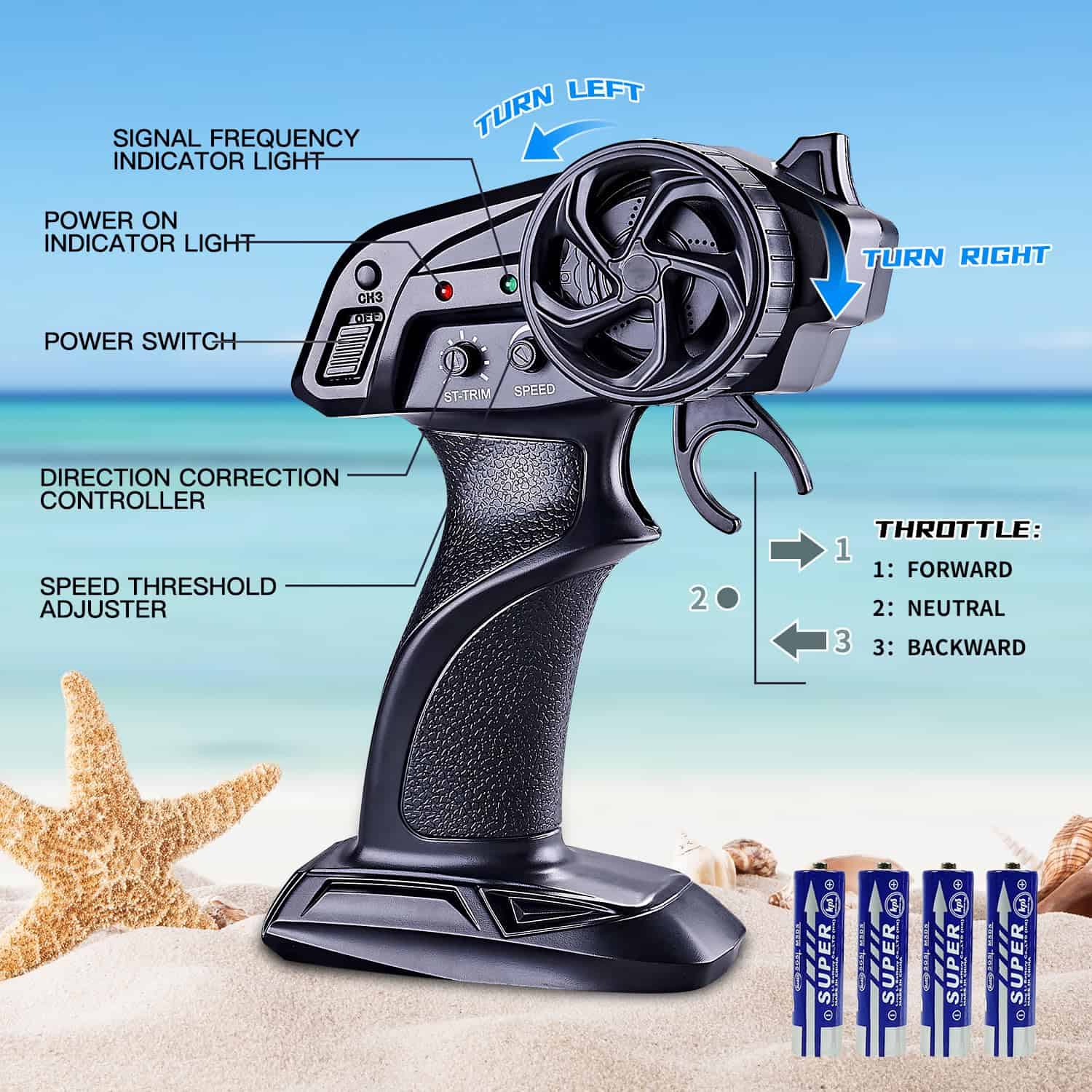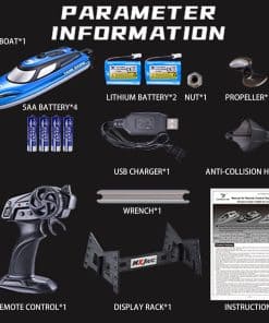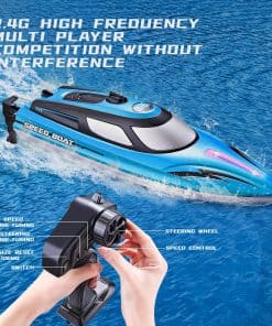Equipados con una potente batería de litio, nuestros barcos RC ofrecen un rendimiento duradero, lo que te permite disfrutar de un tiempo de juego extendido sin interrupciones. El control remoto incluido proporciona un control preciso sobre el movimiento del barco, lo que te permite navegar por el agua con precisión.