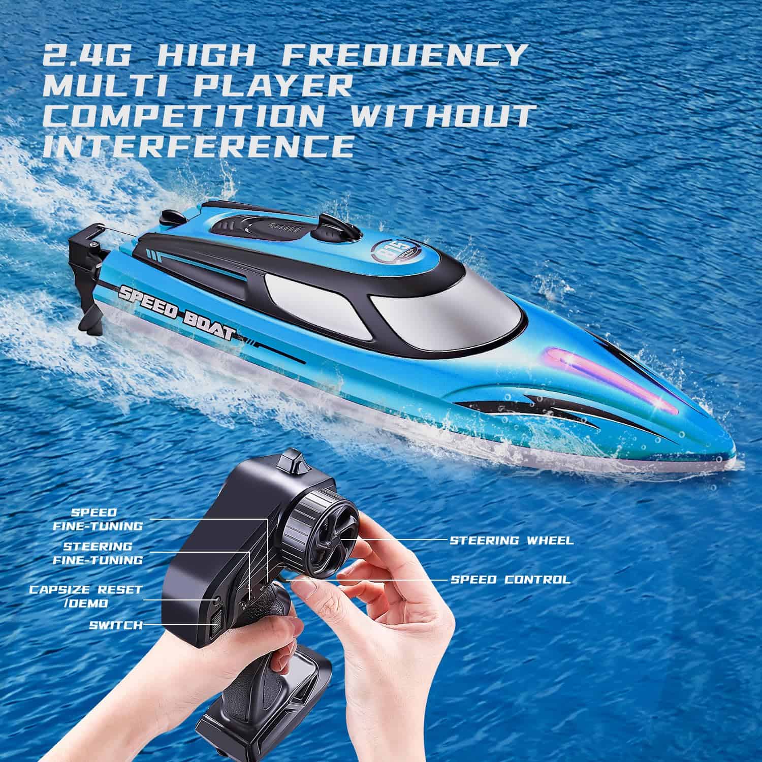 Una de las características destacadas de nuestros barcos RC es la capacidad de presentación en ocho figura. Con solo pulsar un botón, podrás ver cómo el barco realiza maniobras impresionantes, cautivando a los espectadores y mostrando tus habilidades. La luz LED añade un toque extra de emoción, asegurando que tu barco destaque incluso en condiciones de poca luz.